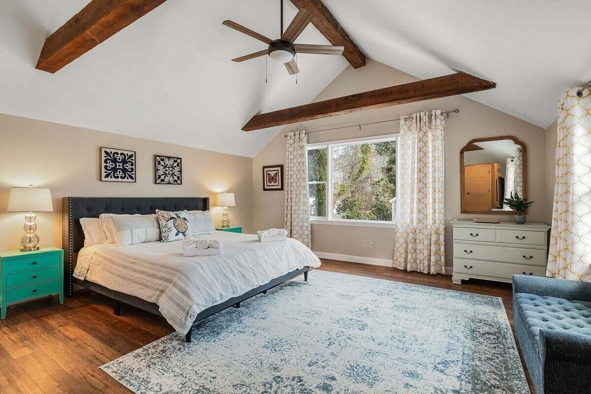 Primary bedroom on opposite side of screen porch