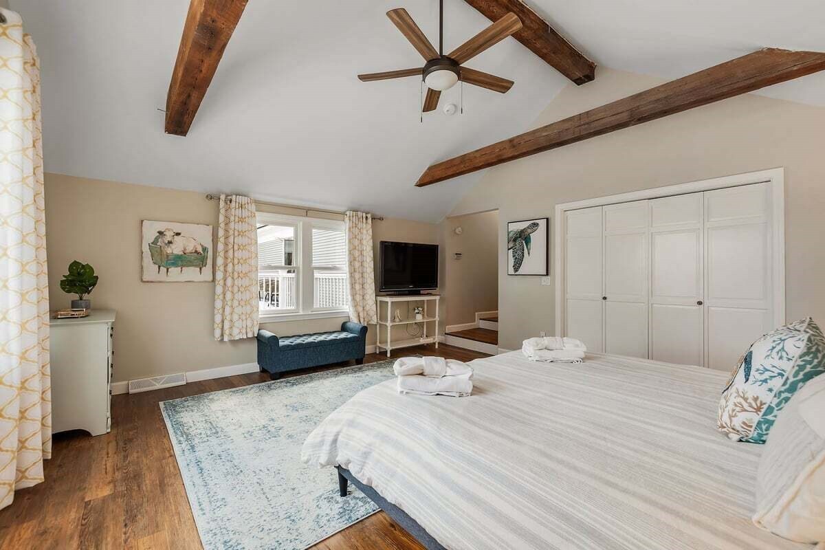 Primary has a king bed and streaming TV