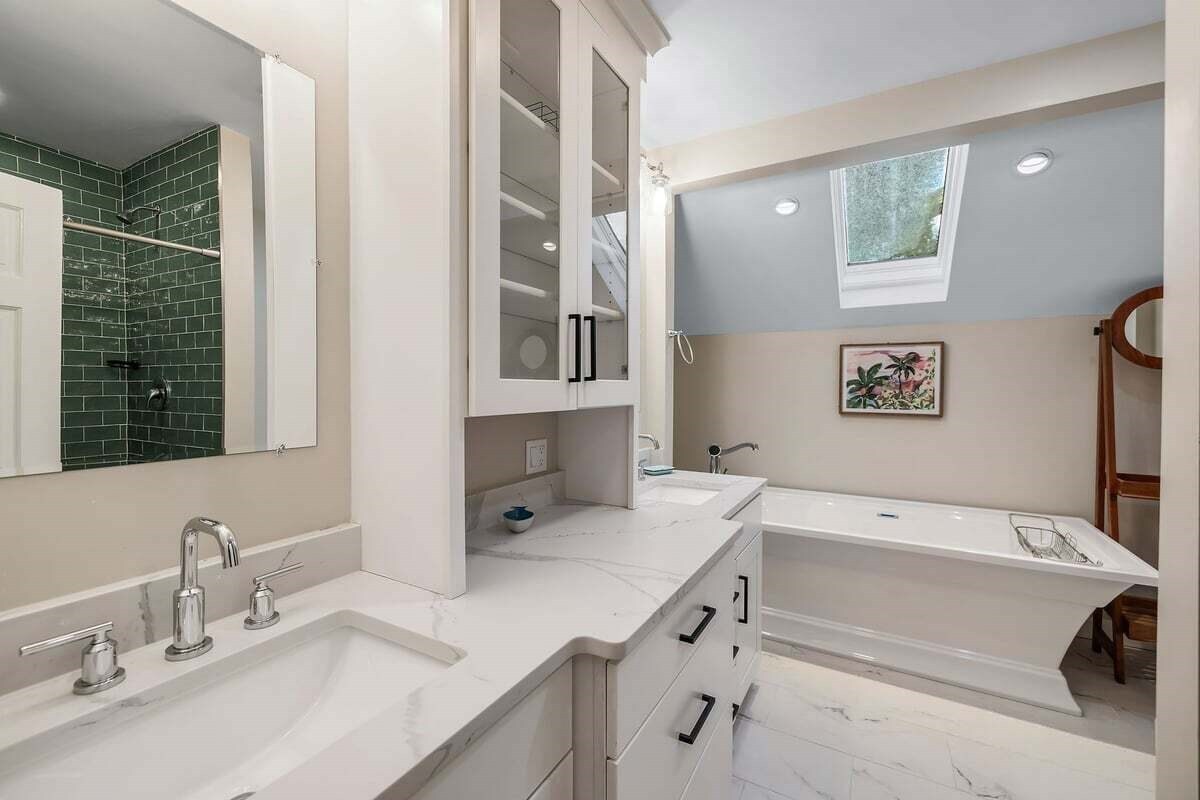 Ensuite bathroom for primary bedroom with shower & two sinks