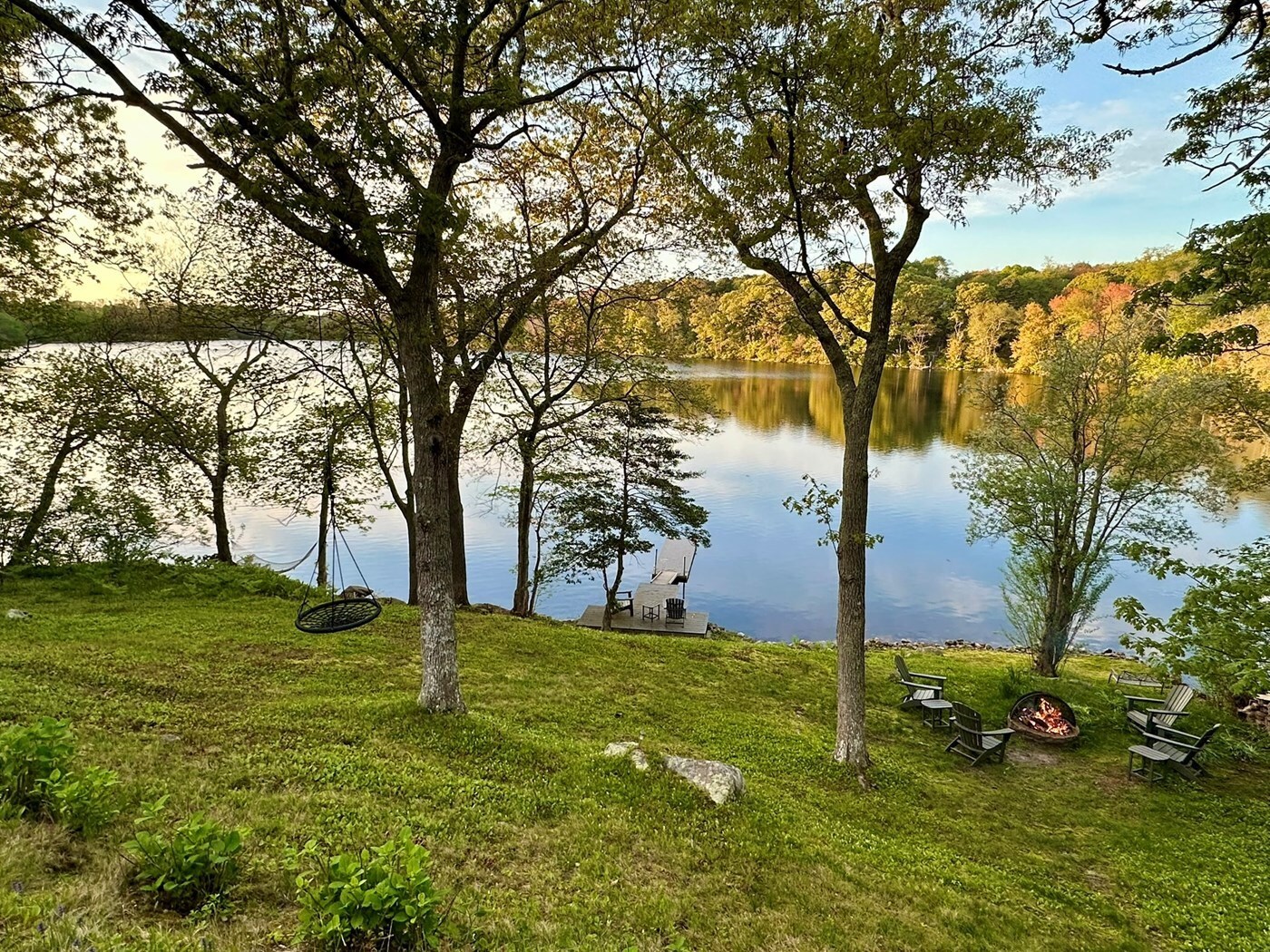 What makes this property special is the rare combination of a peaceful private waterfront setting and a home that feels truly fresh, modern, and cared for. You have exclusive backyard access to clear water Garretts Pond with your own dock, plus kayaks and a dinghy ready for morning paddles, swimming, and sunset cruises. The wraparound deck overlooks the water, giving you front row pond views for coffee, grilling, and relaxed outdoor dining. After a beach day, rinse off in the outdoor shower, then gather around the fire pit under the stars.