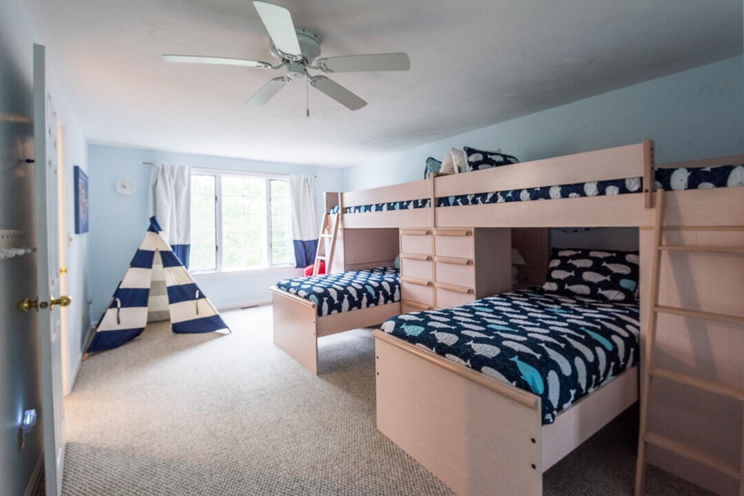 Bedroom #3: 3 Twin beds and 1 Twin-over-Full bunk bed (5 beds total, renovated for 2026) <br />