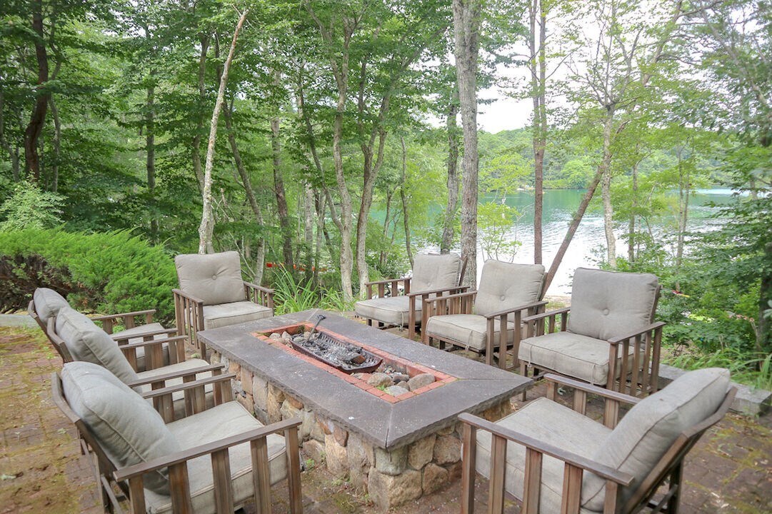• Fire pit area with seating overlooking the pond<br />