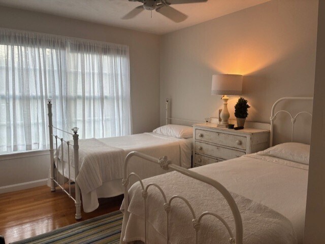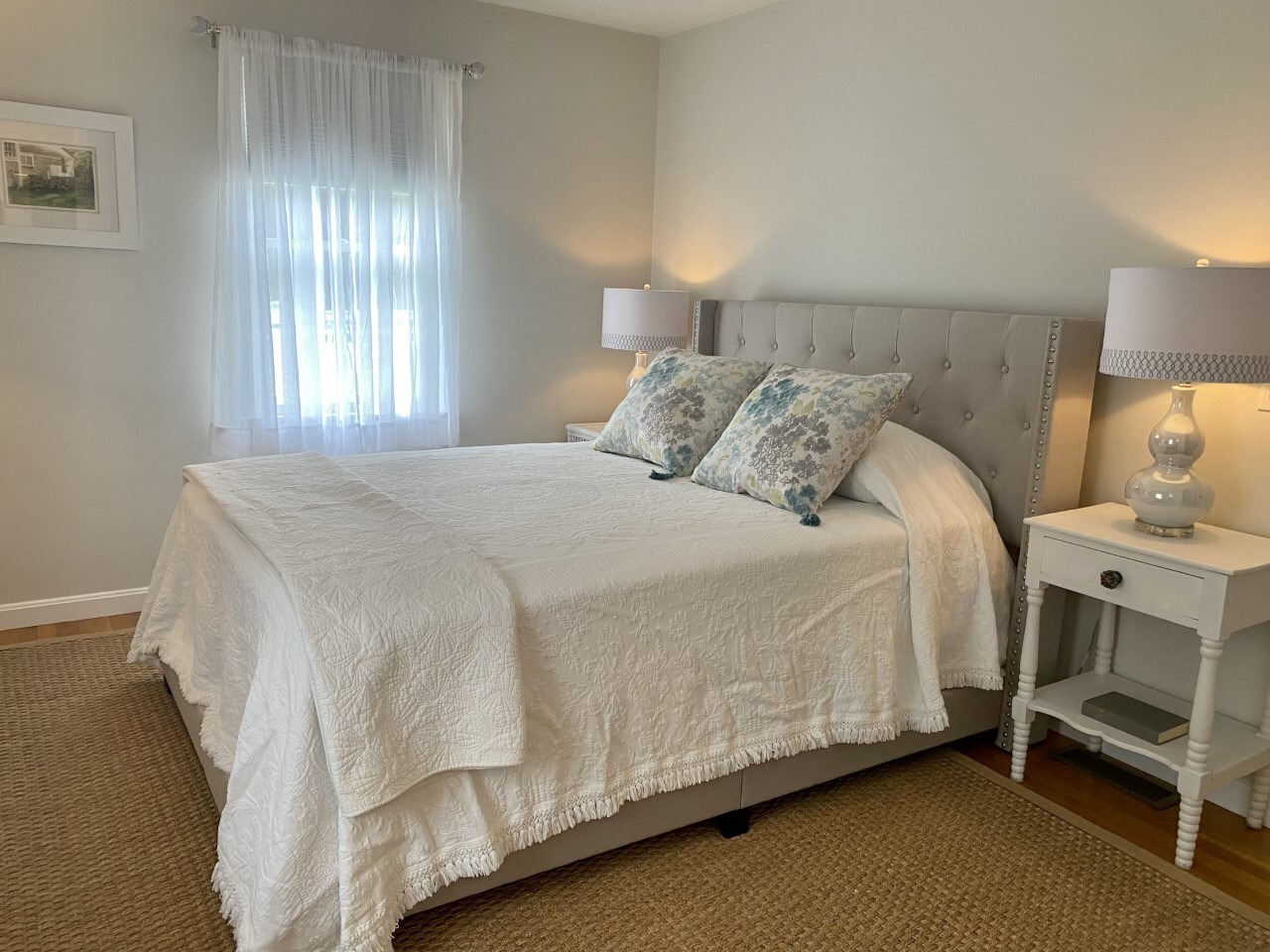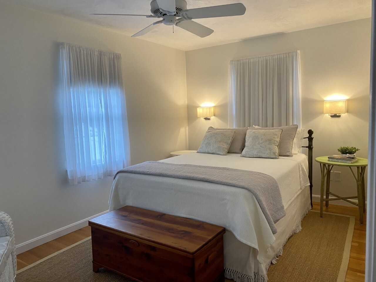 Primary Bedroom w/ Queen size bed, ceiling fan, private full bath