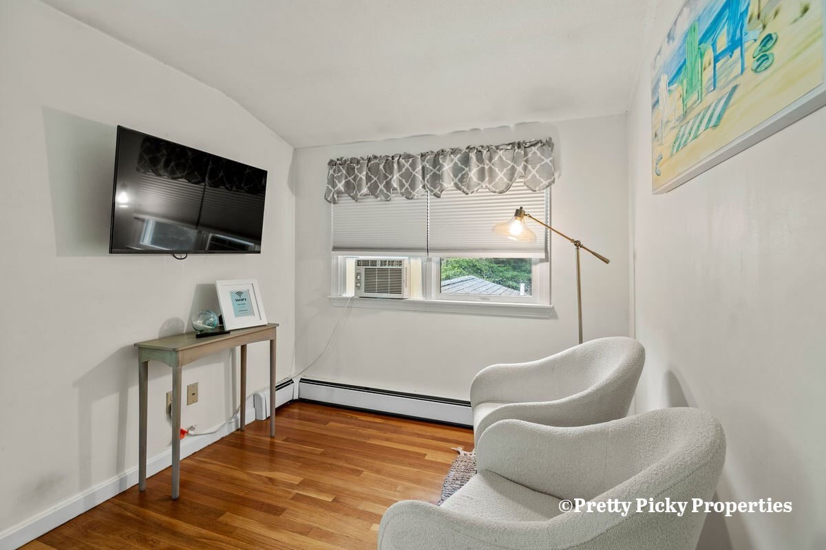 Second floor bedroom with a full-size double and a twin bed. Wall mounted mini splits have replaced the window unit AC.