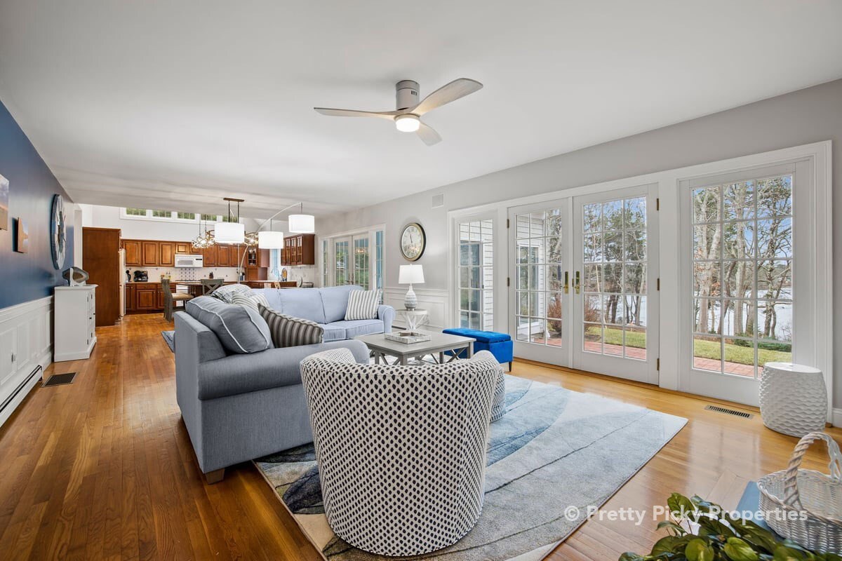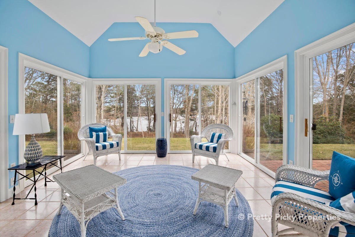 Three-season room is a screened porch in summer with a captivating water view.