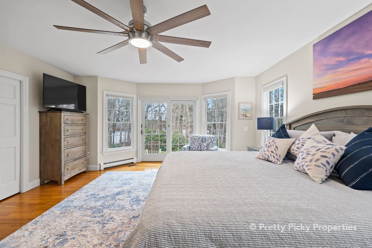 King master bedroom with a water view.