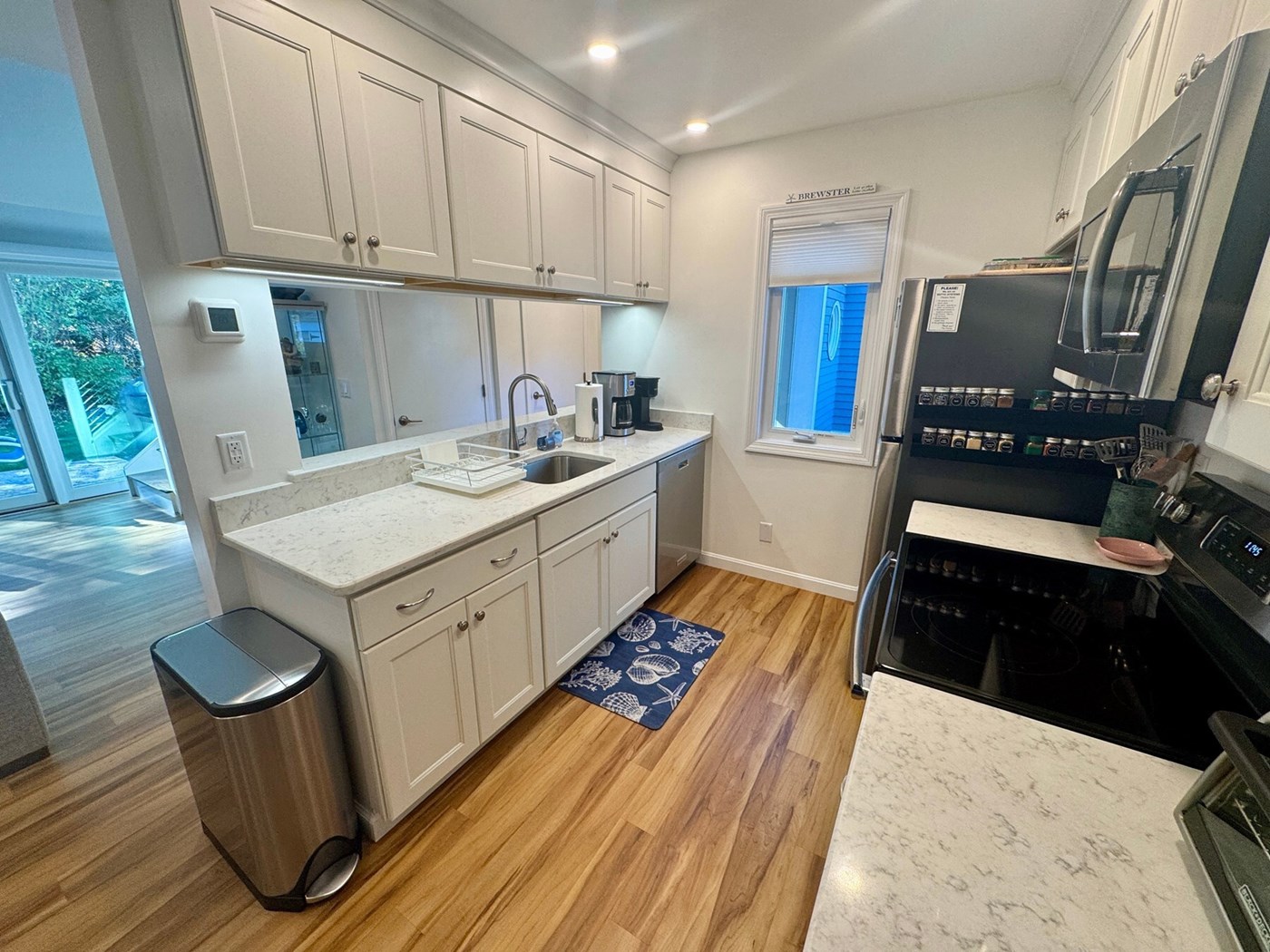 Experience Cape Cod luxury at its finest in this beautifully updated condo featuring a perfect blend of modern sophistication and coastal charm. Every space has been thoughtfully designed with stylish finishes, light-filled interiors, and a tranquil seaside-inspired décor — creating an atmosphere that’s both elegant and inviting. Relax in the airy living room, prepare meals in the fully equipped gourmet kitchen, or unwind on the private patio surrounded by the resort’s peaceful ambiance. Every detail reflects comfort, quality, and a touch of seaside serenity.