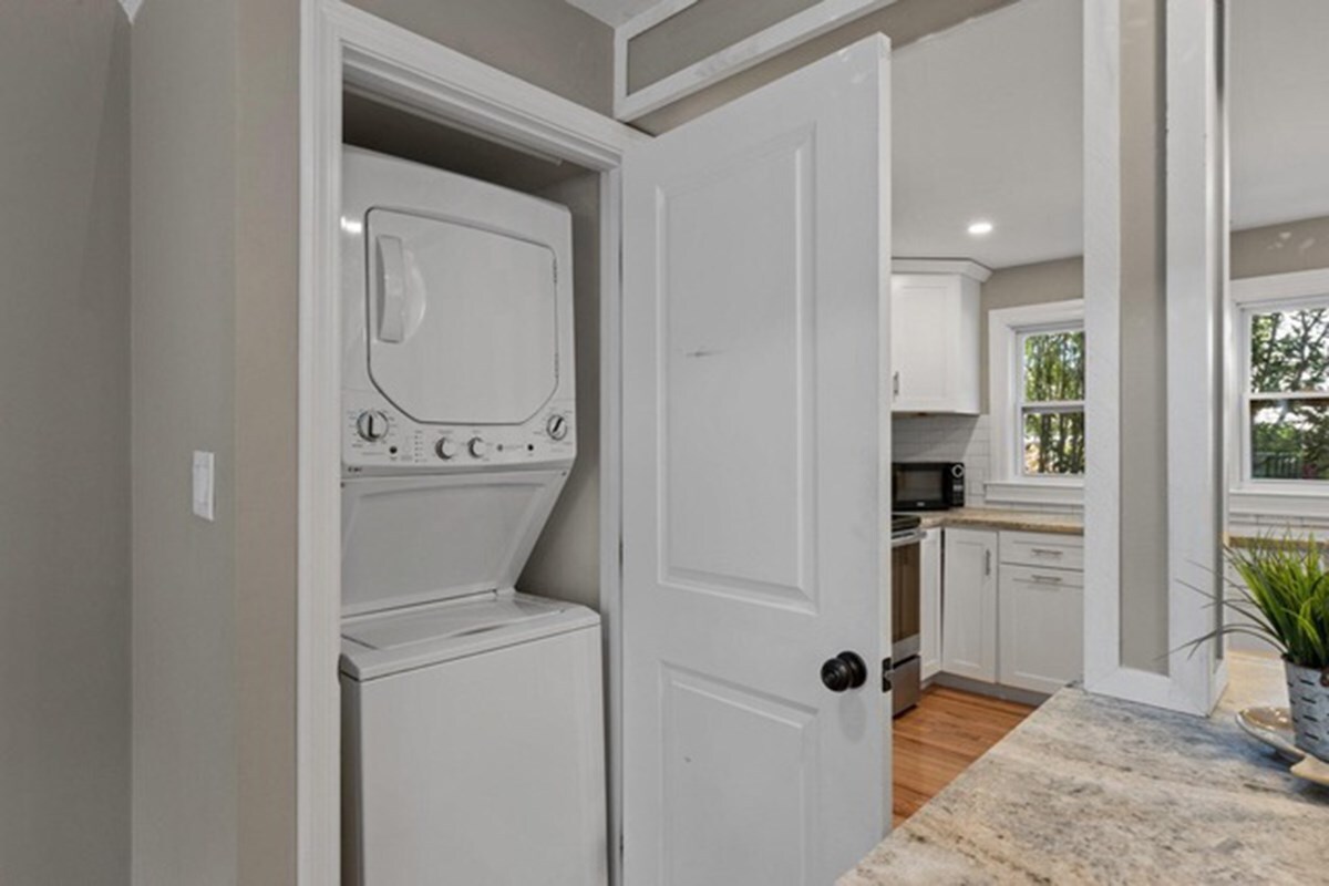 Kitchen features stainless steel appliances and gorgeous quartzite counters