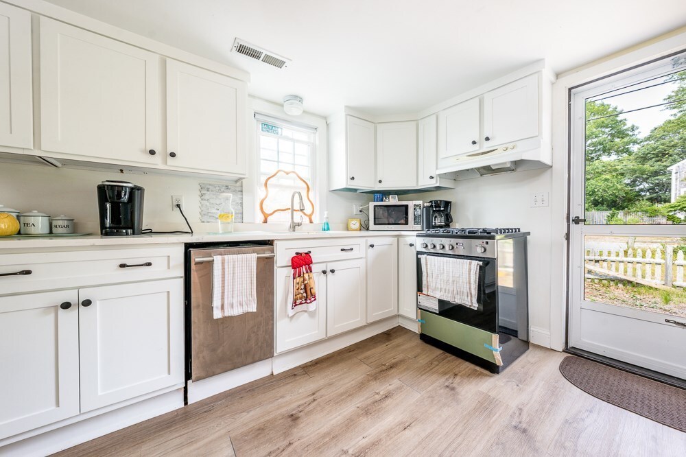 Renovated kitchen with a new Dishwasher and a new gas range.