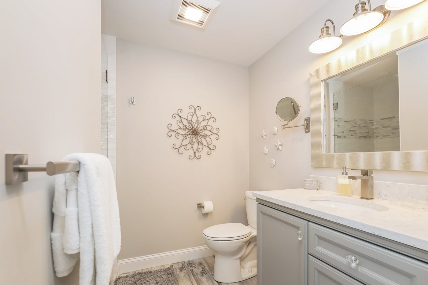 En-suite full bathroom with glass shower - 405 Old Wharf Road-Dennisport Cape Cod- New England Vacation Rentals