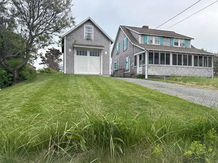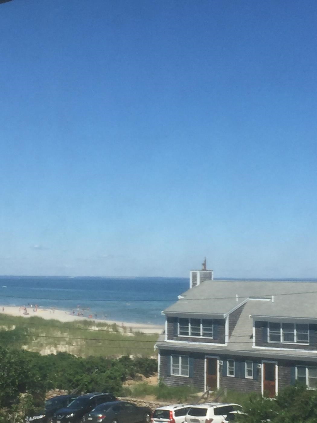 Traditional 6 rooms + big screened in porch located 2 houses from the entrance to Bayview Beach (next to Mayflower Beach). A peek at the ocean from porch and several rooms. Gorgeous sunsets from the porch. Featuring two picnic areas (one enclosed on long screened in porch, one on patio with grille.)