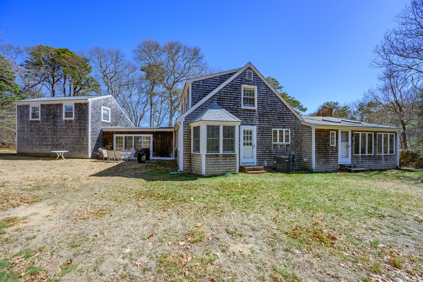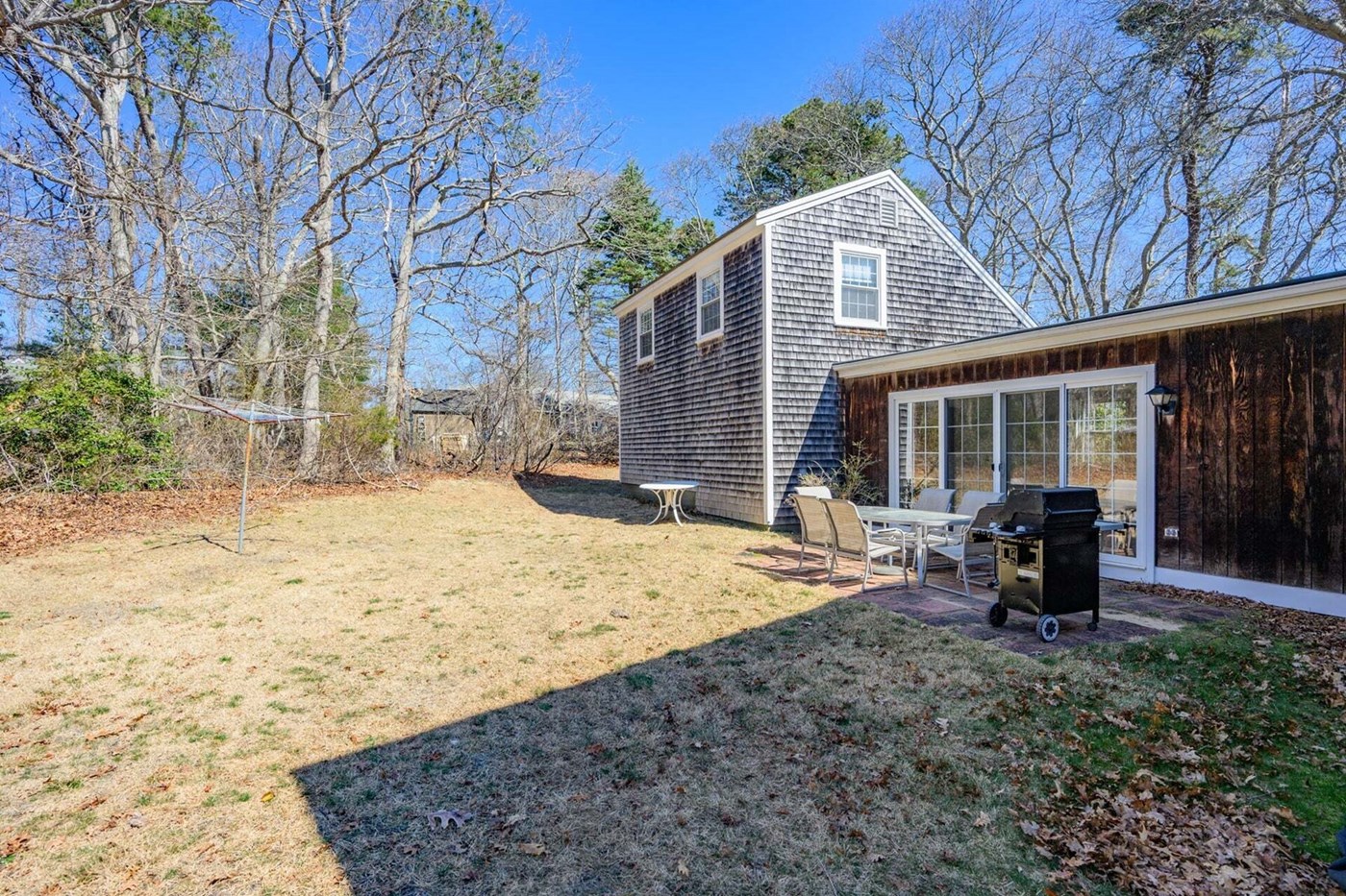 Back patio with grill and dining table