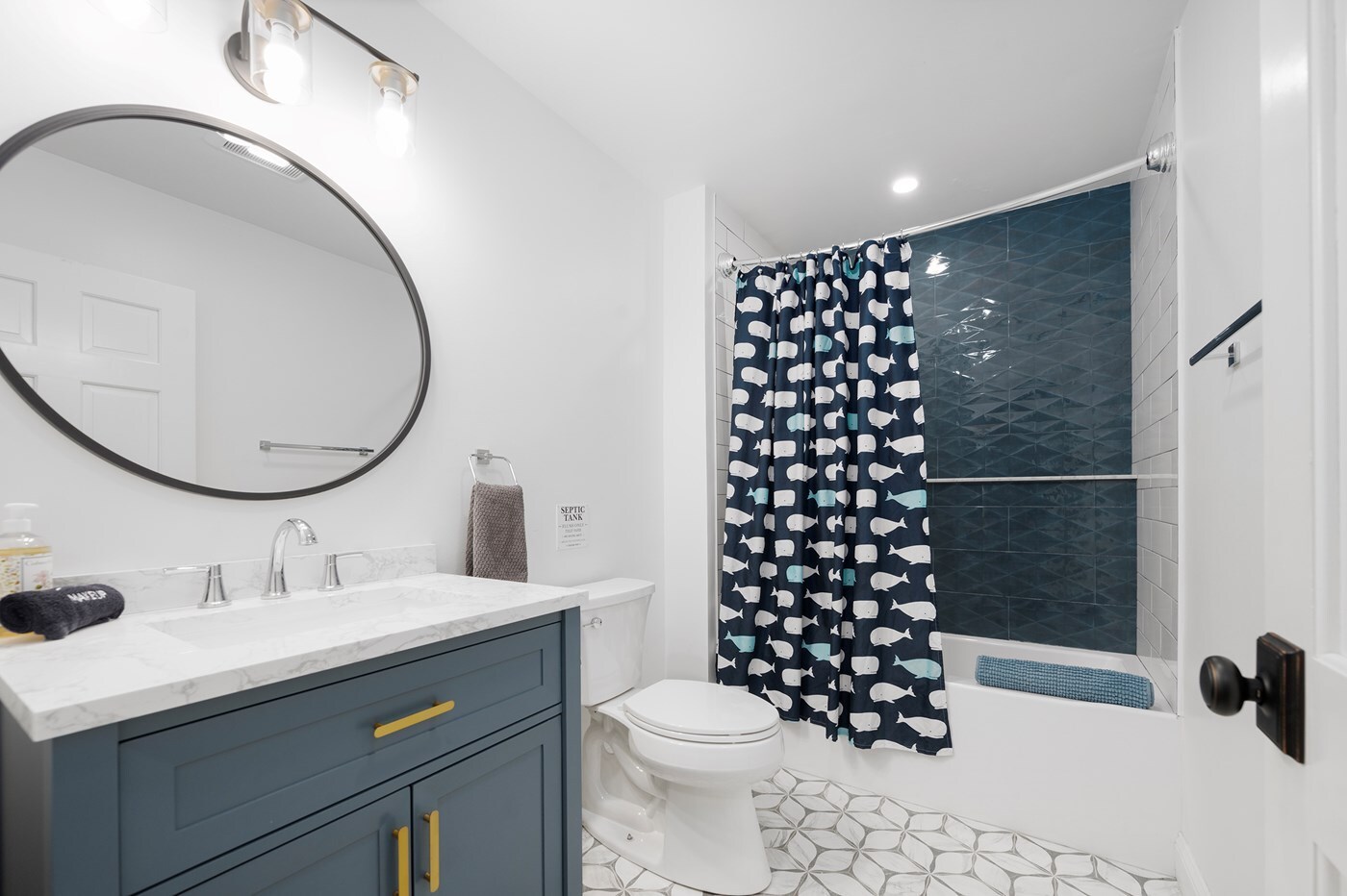 Full bathroom on the upper level. Shared with 3 bedrooms.