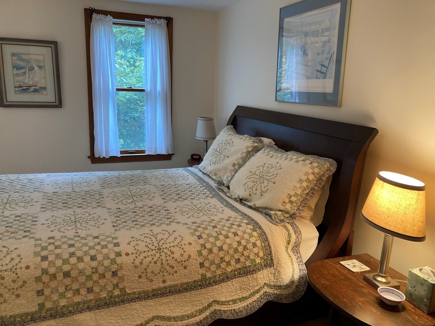 First floor bedroom w/ queen bed. Bathroom & laundry across hall