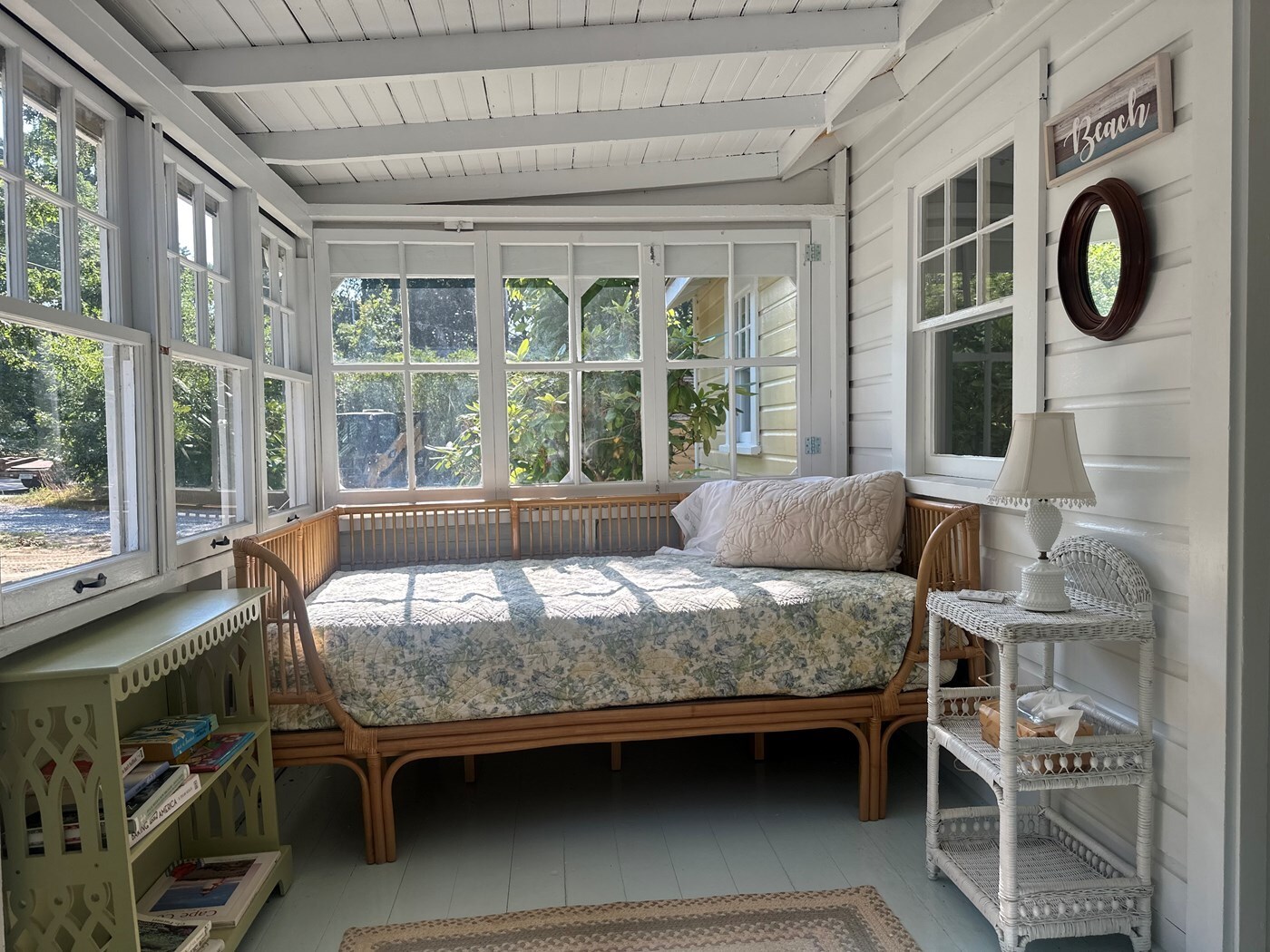 What we love most is how peaceful and easy it feels to be here. Mornings start with coffee and fresh air, afternoons are for the beach or bike rides, and evenings are perfect for sitting outside and enjoying the calm. The enclosed sunroom is a favorite spot for reading or resting after a day by the bay.