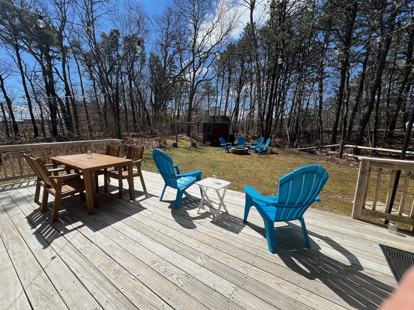 • Outdoor dining set and Adirondack chairs with string lights & fairy lantern lights<br />