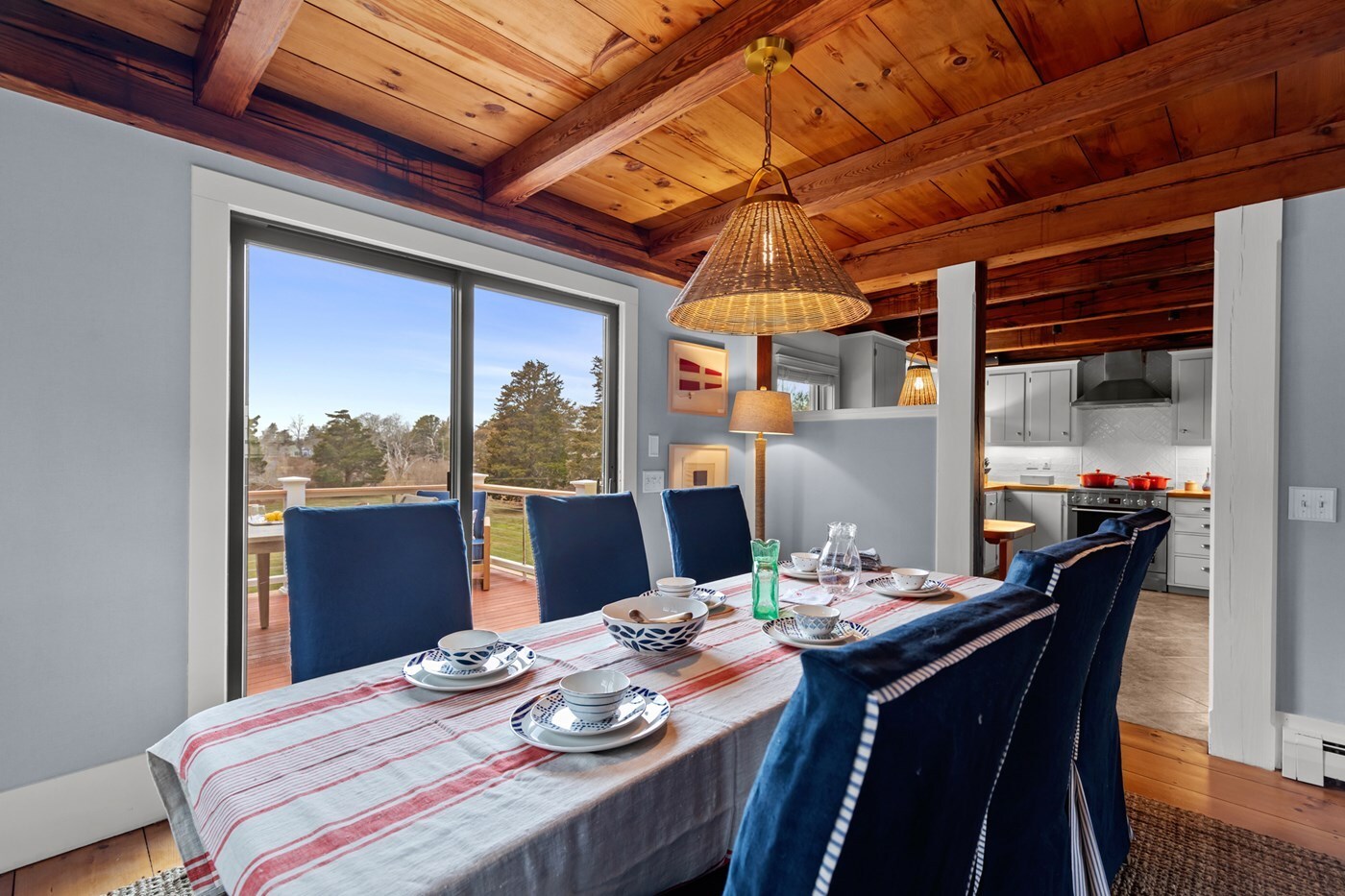 Dining room opens toward the deck and kitchen
