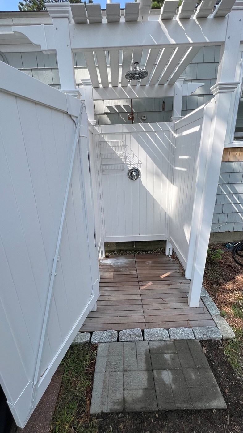 Day at the beach,Rinse off in the outdoor rainfall shower