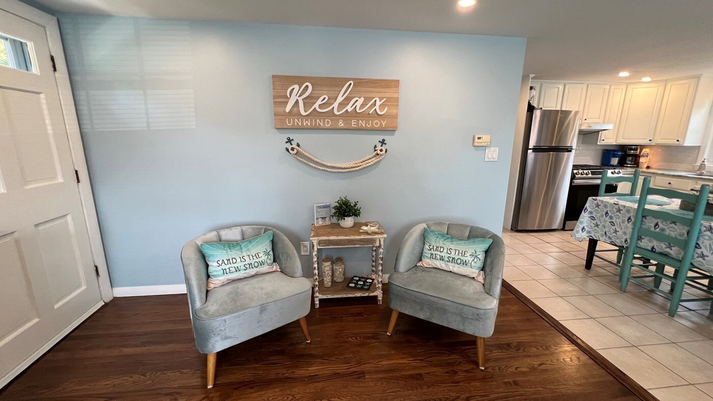 Private beach 3/10 of a mile to walk.)10 min)Grab wagon/chairs