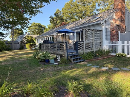 Porch w/ grill, plenty of seating, fenced in, and outdoor rinsing