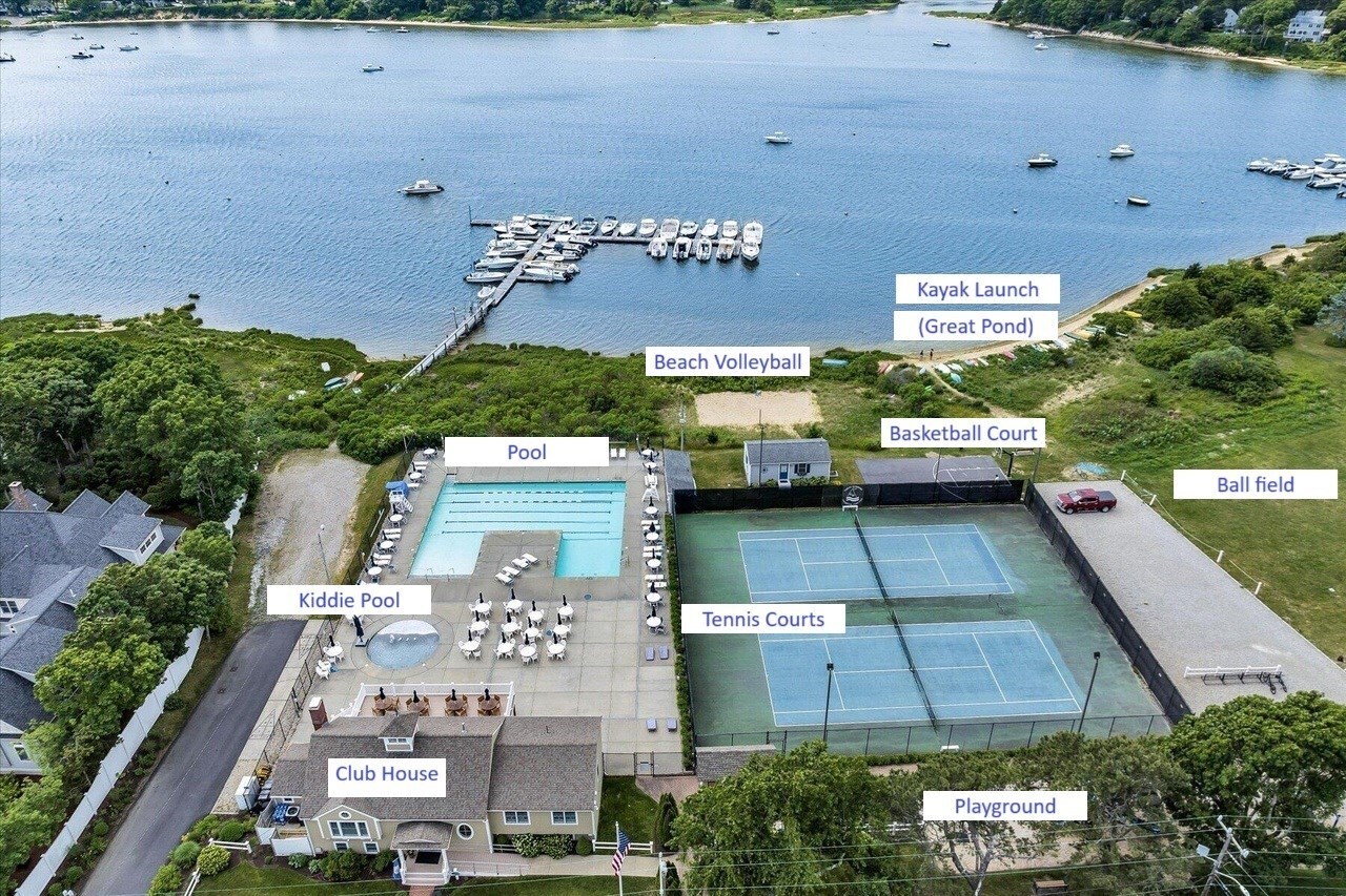We are located in Great Harbors, a private community with family-friendly, quiet streets perfect for a leisurely walk or bike ride. Our house is <1 block from amenities like a playground, tennis & pickleball courts, basketball court, and baseball diamond, as well as access to Great Pond (where you can launch your kayak).<br />
