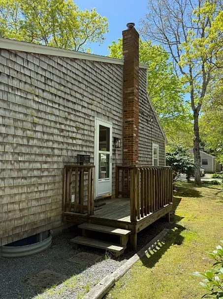 Private side deck with outdoor seating and yard access