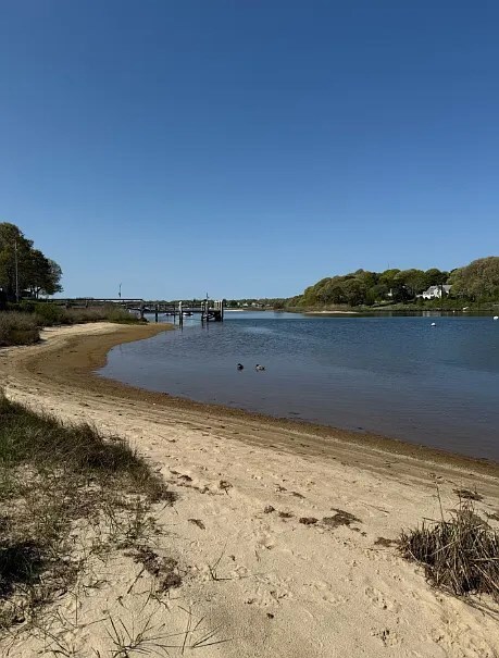 Private Great Pond beach access with kayaks and dock nearby