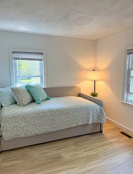 Additional sleeping space with natural light and wood floors