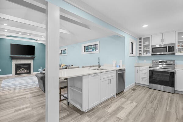 Kitchen with stone countertops and stainless appliances
