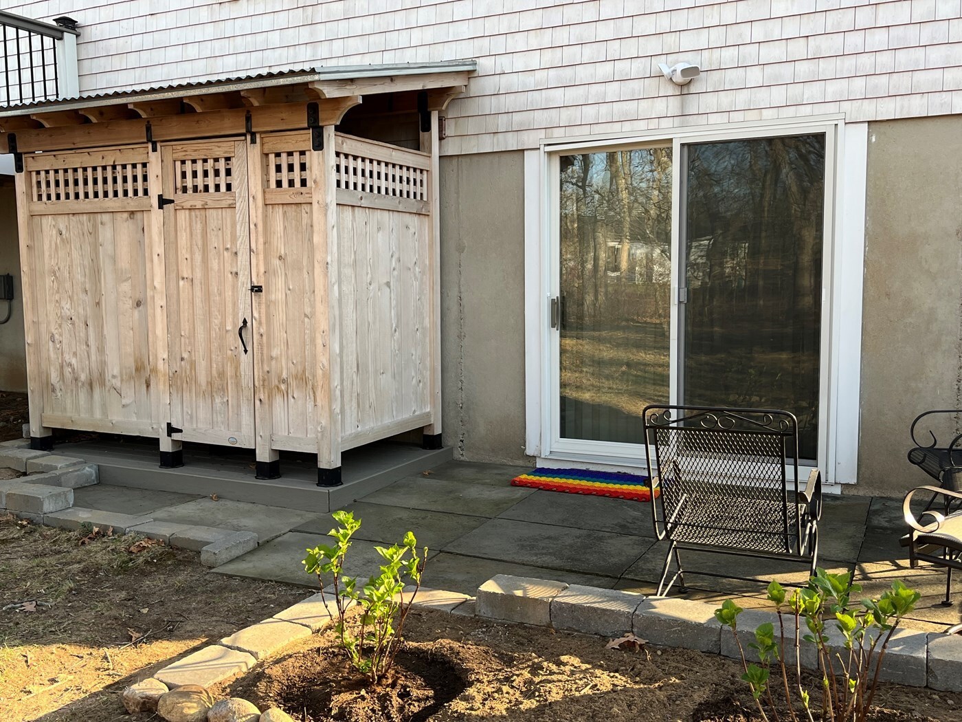 Outdoor shower with changing area