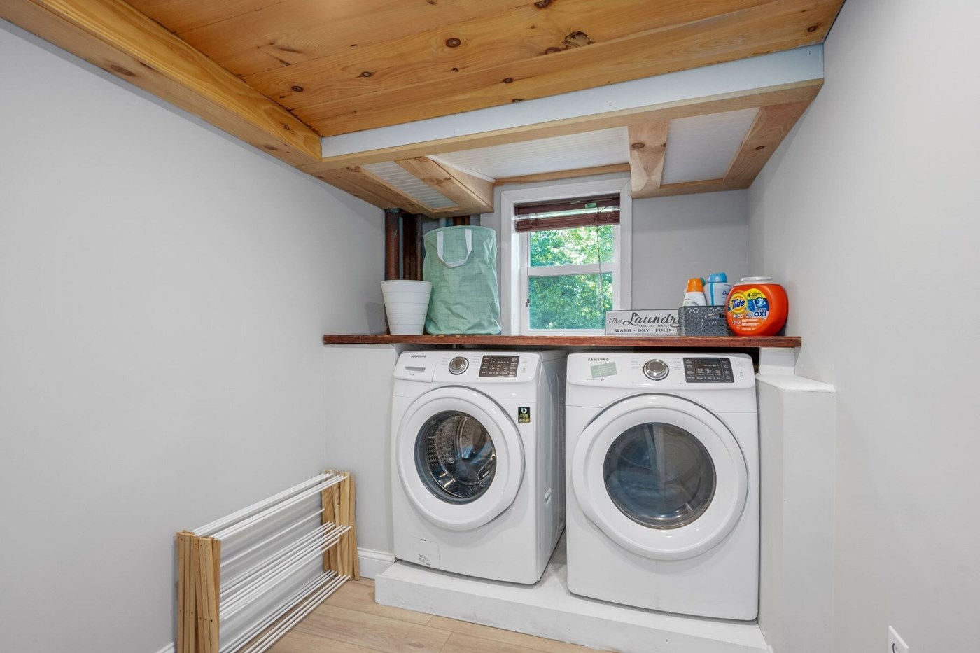 A laundry room is conveniently located on the lower level of this home