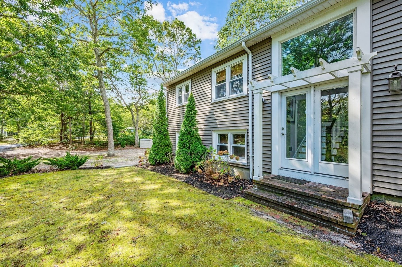 Exterior view of formal entry and driveway beyond