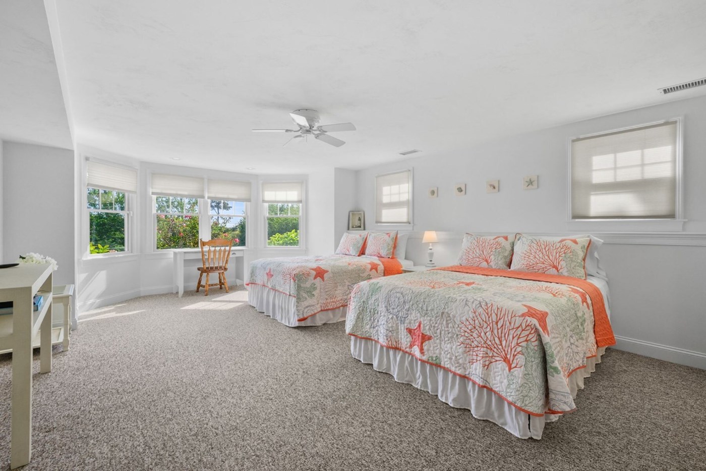 Windsong captured our hearts the first time we walked through the front door, up into the living room and kitchen, and took in our sweeping views of Red River Beach and Nantucket Sound. The sights, sea breeze, and quiet neighborhood are the perfect backdrop for everything from morning coffee to late afternoon cocktails, to fun-filled dinners with family and friends. Whether it's the adults relaxing on the beach, the kids hunting for crabs, minnows, and seashells in the river, or fishing off the jetty, Red River Beach provides endless entertainment for everyone. We are our happiest at Windsong – hanging out on the deck, enjoying the beach, playing lawn games in the yard, exploring nearby Chatham and Harwich Port – we simply never want to leave!<br/>Let Us Tell You About This Home:<br/>Enjoy the ultimate Cape Cod getaway at this spacious Harwich rental, perfectly located just 0.5 miles from Red River Beach. Nestled in one of the most sought-after neighborhoods, this home seamlessly blends modern comfort with classic coastal charm, making it the perfect spot for families and groups seeking to relax, explore, and create lasting memories.<br/>The home features two spacious levels, providing plenty of room to spread out. The main living area is located upstairs, where a bright and welcoming living room flows seamlessly into the dining space and fully equipped kitchen. The ground level offers additional living space and generously sized bedrooms, giving everyone the comfort and privacy they need.<br/>Bedroom 1- King- Upper floor<br/>Bathroom 1- En suite full with shower- upper floor<br/>Bathroom 2- Full with tub and shower combination with laundry area- ground floor<br/>Bedroom 2- 2 Queens- Lower floor<br/> Half bath- Ensuite to Bedroom 2 <br/>Bedroom 3- Queen- Lower floor<br/>Bathroom 3- Jack and Jill full with tub and shower combination- lower floor <br/>Bedroom 4- Bunkbed with trundle- Lower floor<br/>Central air conditioning keeps the entire home cool during warm summer days, while Wi-Fi and entertainment options provide convenience for all ages.<br/>Step outside onto the expansive upper-level deck and take in stunning water views—an ideal setting for morning coffee or evening cocktails. With ample seating, a gas grill, and an outdoor dining table, the deck is the centerpiece for summer gatherings.<br/>An outdoor shower adds to the true Cape Cod experience, perfect after a day at the beach. Beyond the home, guests are a short drive from Chatham and can enjoy Chatham's charming Main Street, local dining, boutiques, and nearby attractions, including lighthouse tours, bike trails, and boating adventures. This retreat blends location, space, and comfort, making it the perfect backdrop for your Cape Cod vacation.<br/>From sunrise coffees on the deck to sunset strolls along Red River Beach, every moment here captures the magic of Cape Cod. With stunning views, unbeatable comfort, and a prime Chatham location, this retreat isn't just a rental; it's where your most unforgettable summer memories begin<br/>Free Tickets and Complimentary Activities! Create unforgettable memories and experience Cape Cod like a local! Enjoy $750 worth of daily exclusive free tickets to exciting local attractions through our partnership with Xplorie. Your amenities include activities such as Island Cruises, Whale Watch, Bike Rentals and admission to Whydah Pirate Museum. When you're not soaking up the sun on the beach, enjoy daily rounds of golf at Cranberry Valley or Chequessett Golf Courses and mini-golf for family fun.<br/>With all NEVR properties, we think of the little things to make your vacation special. Our Guest Welcome Bag, compliments of the homeowner, contains starter quantities of kitchen and bathroom essentials, with a few locally sourced snacks as well (subject to change based marketplace availability).<br/>This home has Keyless Entry for your convenience.<br/>NO smoking of anything containing tobacco, any other substance, and e-cigarettes, inside or outside of the home.<br/>NO Pets are allowed inside or outside the home<br/>Max parking of cars at the property: 3 at the front of the property <br/>Additional Information to Assist You:<br/>Booking direct with New England Vacation Rentals offers the best rate guarantee on the web. Our calendars are updated in real-time and are accurate.<br/>Simply follow our basic check-out instructions at your departure. <br/>State and local taxes are charged if applicable. <br/>For Reservations made over 60 days away, you will make two payments - 50% initial payment with reservation and the final balance will be auto billed to your credit card 60 days prior to arrival. We accept American Express, Mastercard and Visa for payments.<br/>A confirmed reservation is non-refundable--please consider purchasing trip cancellation insurance. Ask our guest specialist for more details regarding cancel options and trip insurance. <br/>***Linens - bed sheets, bath/dish/beach towels and bath mats are included with this home<br/>Please ask our guest specialist for details. Our NEVR Homes come with mattress covers, pillows and a bed cover such as blanket, quilt, bedspread etc.<br/>You must be 25+ years old unless accompanied by a parent or guardian to book one of our Vacation Rental Homes. An ID must be furnished upon request. <br/>Area Info: *Mileage is approximate<br/>Red River Beach 0.5 Mile<br/>Forest Beach 0.9 Mile<br/>Shell's By The Sea 2.2 Miles <br/>Stop & Shop 3.1 Miles <br/>Chatham Village Market 4.3 Miles<br/>The Black Dog General Store - 4.6 Miles read more show less