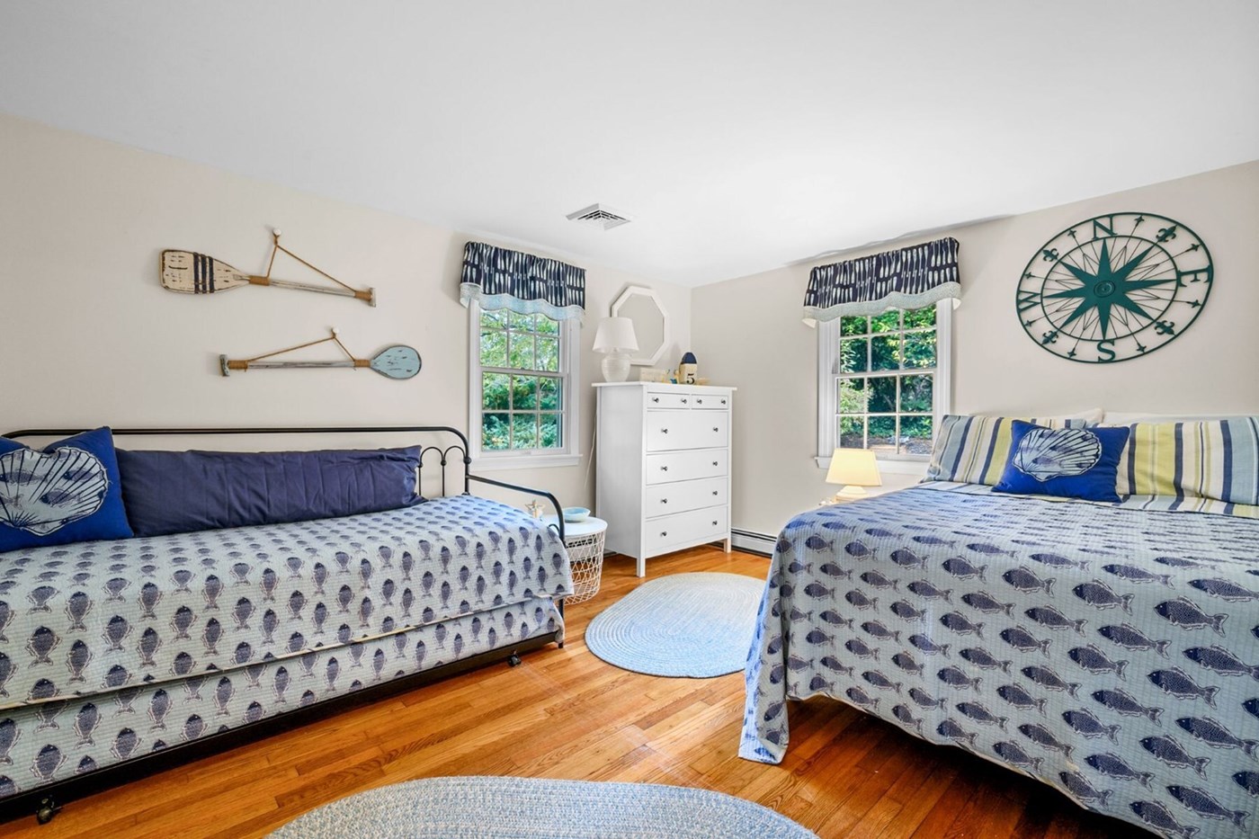 As you step inside, you're greeted by a welcoming and peaceful living room with plenty of cozy seating. Making it the perfect spot to unwind, play games, or make lasting family memories. The open layout flows seamlessly into the dining area with seating for six, and then into a well-equipped kitchen where you can prepare your favorite vacation meals with ease.<br/>The main floor features two inviting bedrooms, making one-level living effortless and comfortable. Venture downstairs to the lower level, where you'll find a cozy third bedroom, a convenient half bath, and a recreation area. Challenge the family to a game of foosball or relax in the second living space, complete with a plush sectional and TV, ideal for movie nights, game days, or simply unwinding after a day of exploring Cape Cod.<br/>Bedroom 1: Queen– Main Level<br/>Bathroom 1: Full with shower/tub combination – Ensuite to bedroom 1<br/>Bedroom 2: Double and trundle- Main level<br/>Bathroom 2: Full with Shower and tub combination- Main level<br/>Bedroom 3: Queen- lower level<br/>Bathroom 3: Half bath- Lower level<br/>Just off the kitchen, relax on the charming screened porch, where you can savor your morning coffee or an evening glass of wine while enjoying serene views of the front lawn and the peaceful backyard. Step outside to the spacious patio, perfect for lounging or dining, complete with a picnic table, outdoor dining set, and a gas grill. After a day at the beach, rinse off in the classic enclosed outdoor shower, a beloved Cape Cod classic.<br/>Ideally situated in the heart of Harwich, this home puts you just minutes from the Cape's best beaches, charming local shops, and delicious dining. Whether you're looking to relax in comfort, explore nearby attractions, or enjoy fun-filled days with family and friends, this retreat offers the perfect blend of convenience, relaxation, and classic Cape Cod charm.<br/>*For your safety and security, the property is equipped with a camera above the garage that monitors the driveway and street. The camera does not capture any indoor areas.<br/>Free Tickets and Complimentary Activities! Create unforgettable memories and experience Cape Cod like a local! Enjoy $750 worth of daily exclusive free tickets to exciting local attractions through our partnership with Xplorie. Your amenities include activities such as Island Cruises, Whale Watch, Bike Rentals and admission to Whydah Pirate Museum. When you're not soaking up the sun on the beach, enjoy daily rounds of golf at Cranberry Valley or Chequessett Golf Courses and mini-golf for family fun.<br/>With all NEVR properties, we think of the little things to make your vacation special. Our Guest Welcome Bag, compliments of the homeowner, contains starter quantities of kitchen and bathroom essentials, with a few locally sourced snacks as well (subject to change based marketplace availability).<br/>This home has Keyless Entry for your convenience.<br/>NO smoking of anything containing tobacco, any other substance, and e-cigarettes, inside or outside of the home.<br/>No Pets are allowed inside or outside the home!<br/>Max parking of cars at property: 4- No parking on lawn anytime.<br/>Additional Information to Assist You:<br/>State and local taxes are charged if applicable. <br/>For Reservations made over 60 days away, you will make two payments - 50% initial payment with reservation and the final balance will be auto billed to your credit card 60 days prior to arrival. We accept American Express, Mastercard and Visa for payments.<br/>A confirmed reservation is non-refundable--please consider purchasing trip cancellation insurance. Ask our guest specialist for more details regarding cancel options and trip insurance. <br/>***Linens - bed sheets, bath/dish/beach towels and bath mats are included with this home<br/>Please ask our guest specialist for details. Our NEVR Homes come with mattress covers, pillows and a bed cover such as blanket, quilt, bedspread etc.<br/>You must be 25+ years old unless accompanied by a parent or guardian to book one of our Vacation Rental Homes. An ID must be furnished upon request. <br/>Area Info: *Mileage is approximate<br/>Red River Beach 1. 2 Miles <br/>Chatham Farmers Market 1.2 Miles <br/>Forest Beach 1.4 Miles <br/>Cockle Cove Beach 2.1 Miles<br/>Shaw's 3.8 Miles read more show less