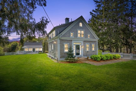 Evening view of the property's front exterior