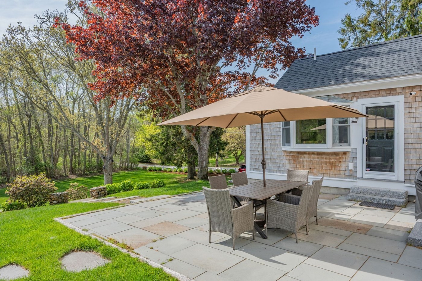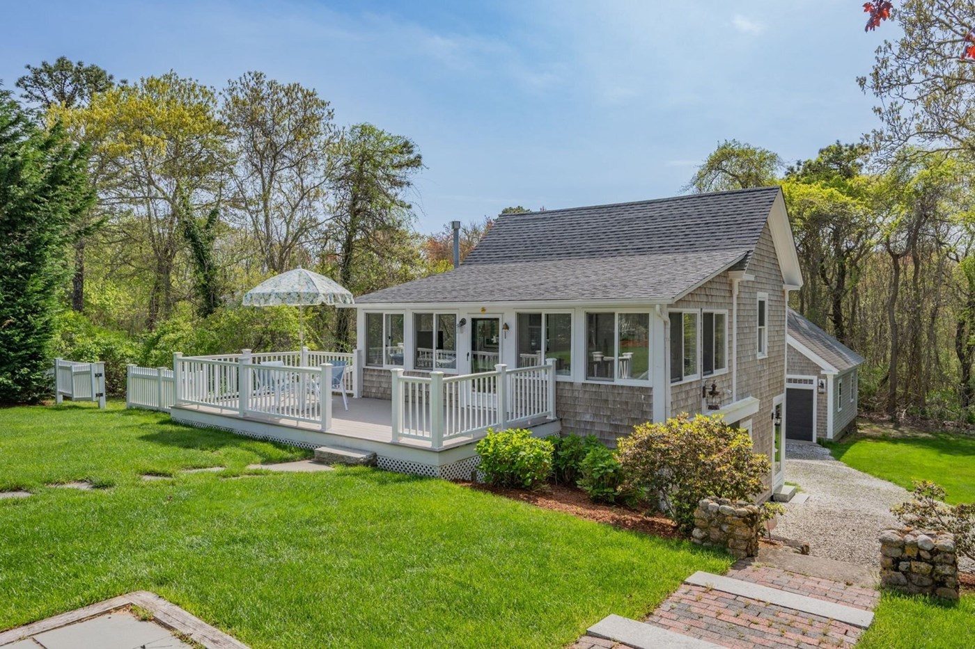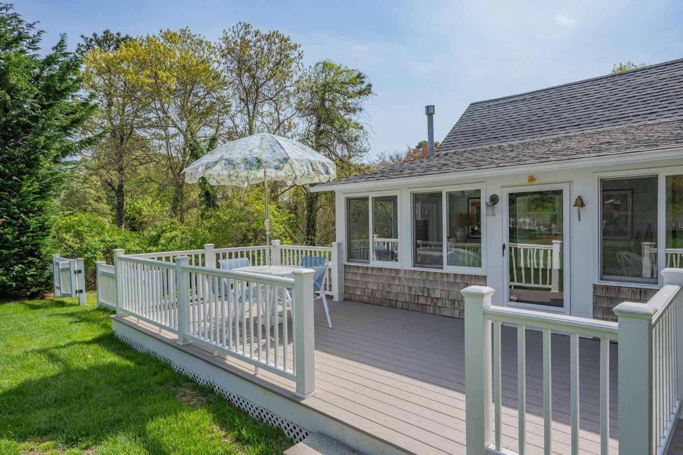 Exterior view of the Cottage deck with dining area