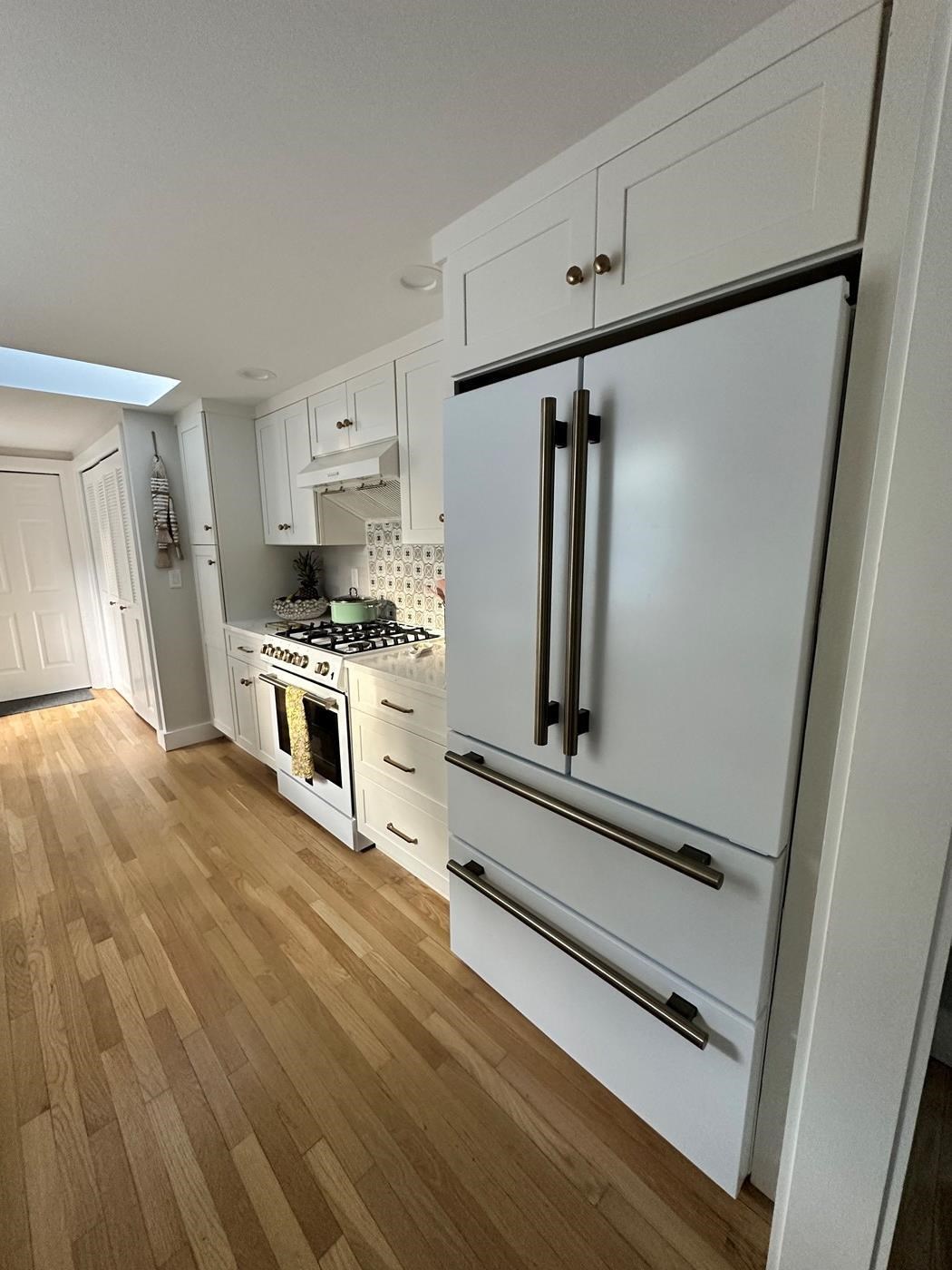 First floor, front bedroom with queen bed, dresser, & 2 closets.