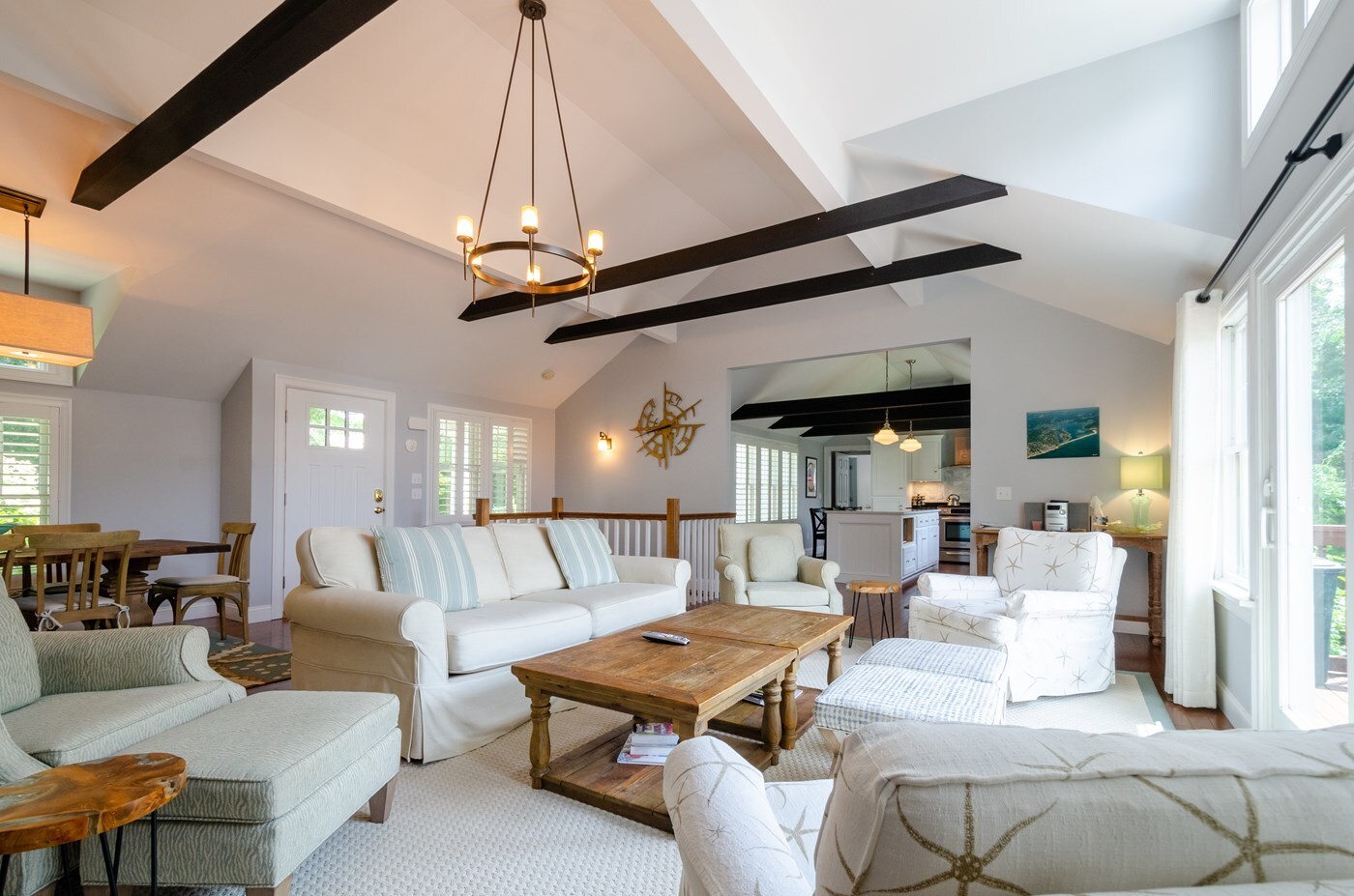 Expansive open concept living room seating for 8