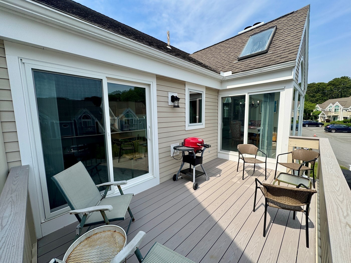 This spacious Endicott Village apartment is only moments away to the Arbor Pool, the Ocean Edge Golf Clubhouse, and the Linx Tavern & Bar. The Primary bedroom has a king size bed, AC, TV, deck, and private bath. The second bedroom has a King and a Queen bed, AC, TV with DVD, and deck. The den accommodates a bunk bed with a trundle (for a total of 3 twins), AC, TV, and sliders to the deck. The fully equipped kitchen offers all the amenities of home, and there is comfortable seating for 6 in the dining area. Sliders off the dining area lead to a furnished deck. The living room offers a TV with DVD, ceiling fan, a wet bar, and AC. Other amenities include light blocking window treatments, laminate flooring, washer/dryer, and WIFI Internet access.