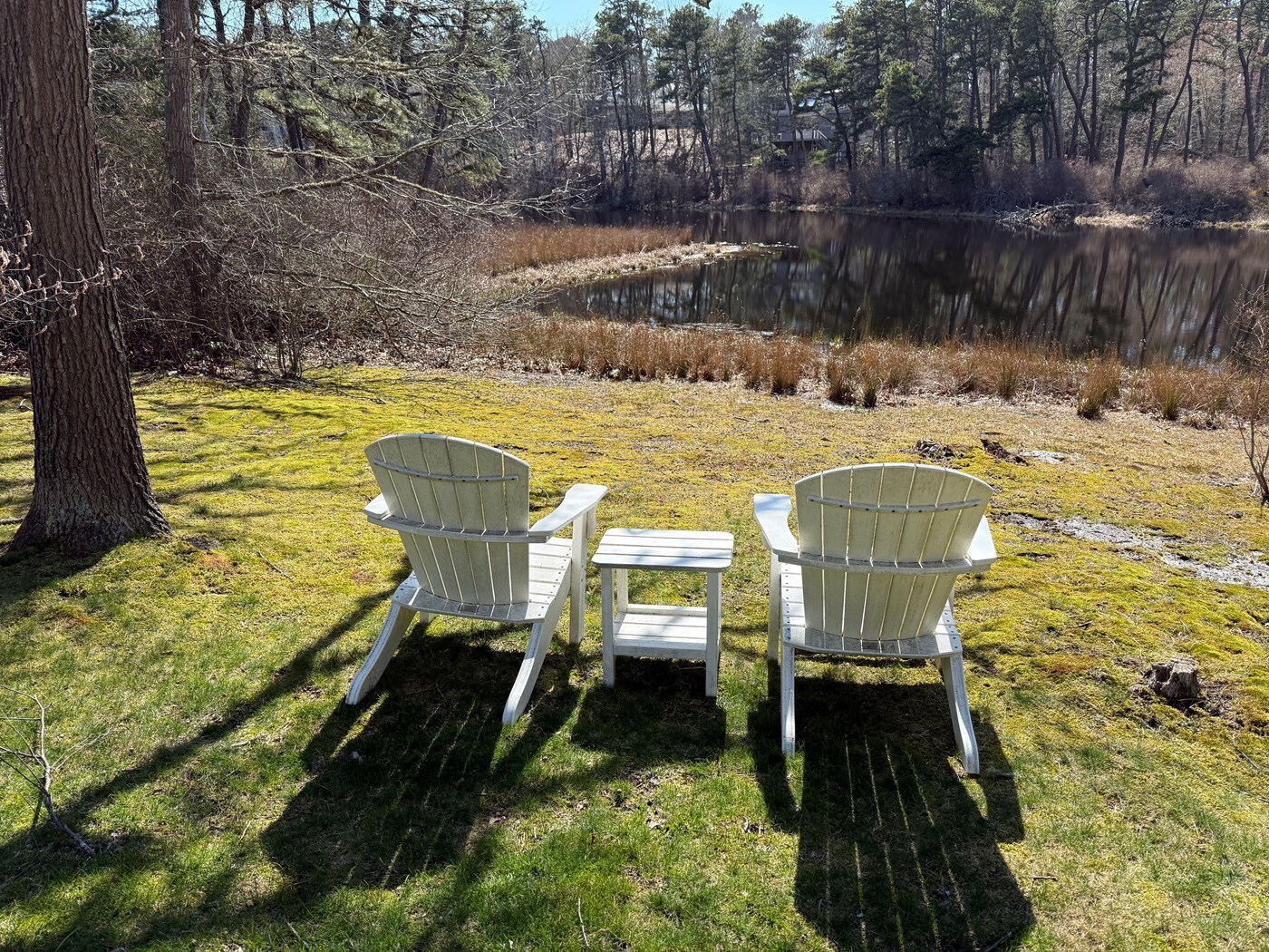 The neighborhood is secluded and quiet (can't even see the neighbors, except across the pond) - great for walking or biking - yet close to both Routes 28 and 39, so you"re never far from anything!