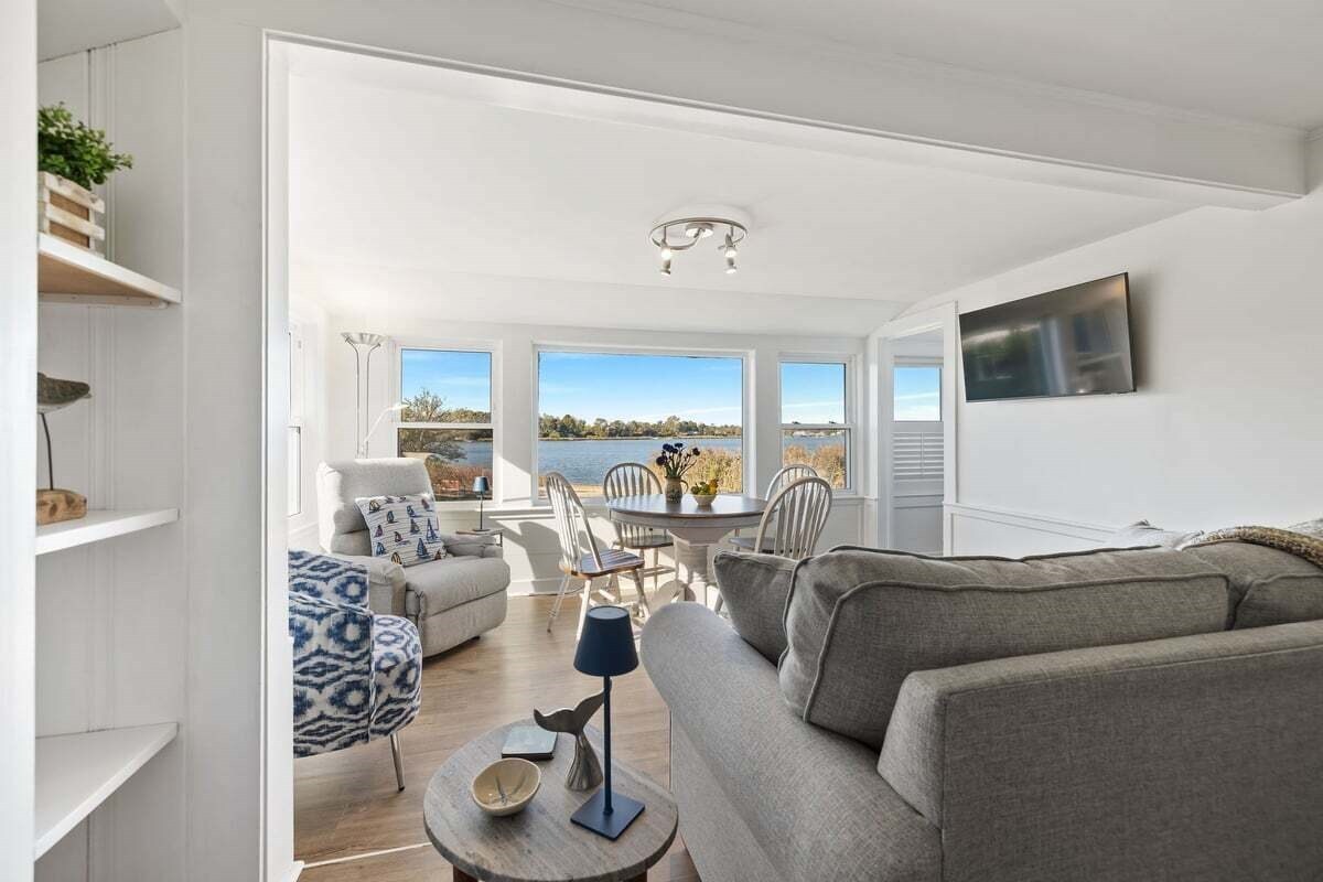 Relax on the couch or dining area while overlooking all the action on Town Cove