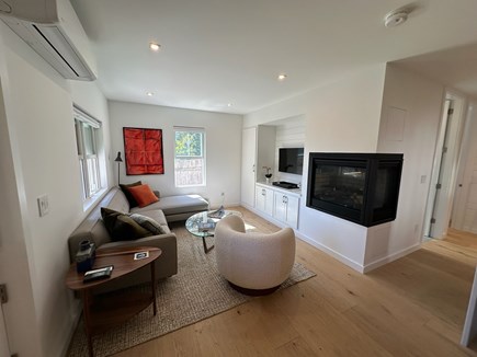 Two sided gas fireplace with remote; can also vent heat into unit