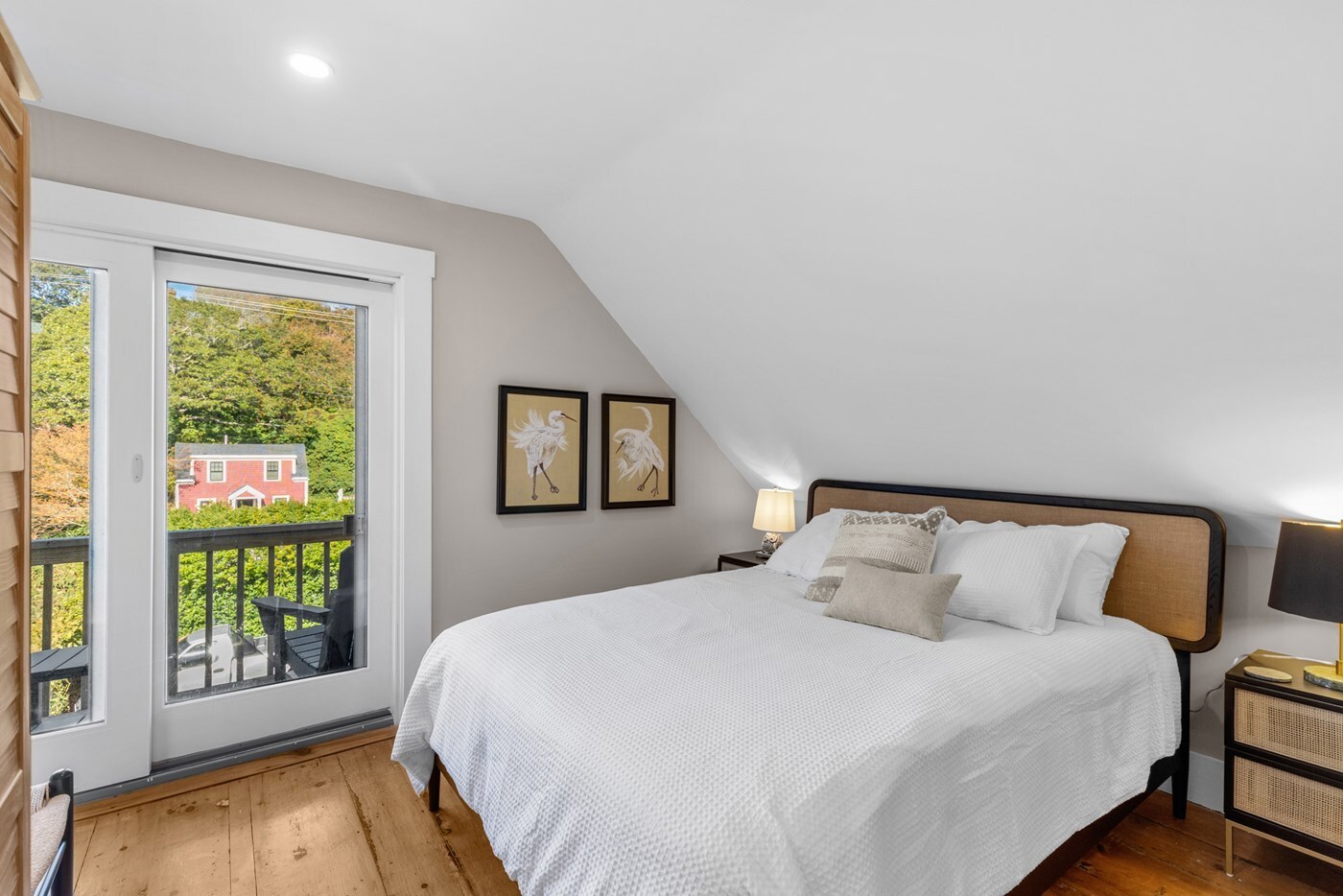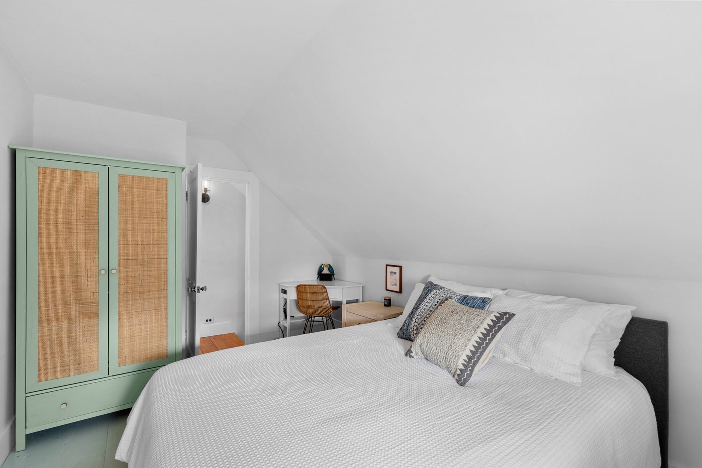 Second upstairs bedroom offers a serene retreat with a queen bed
