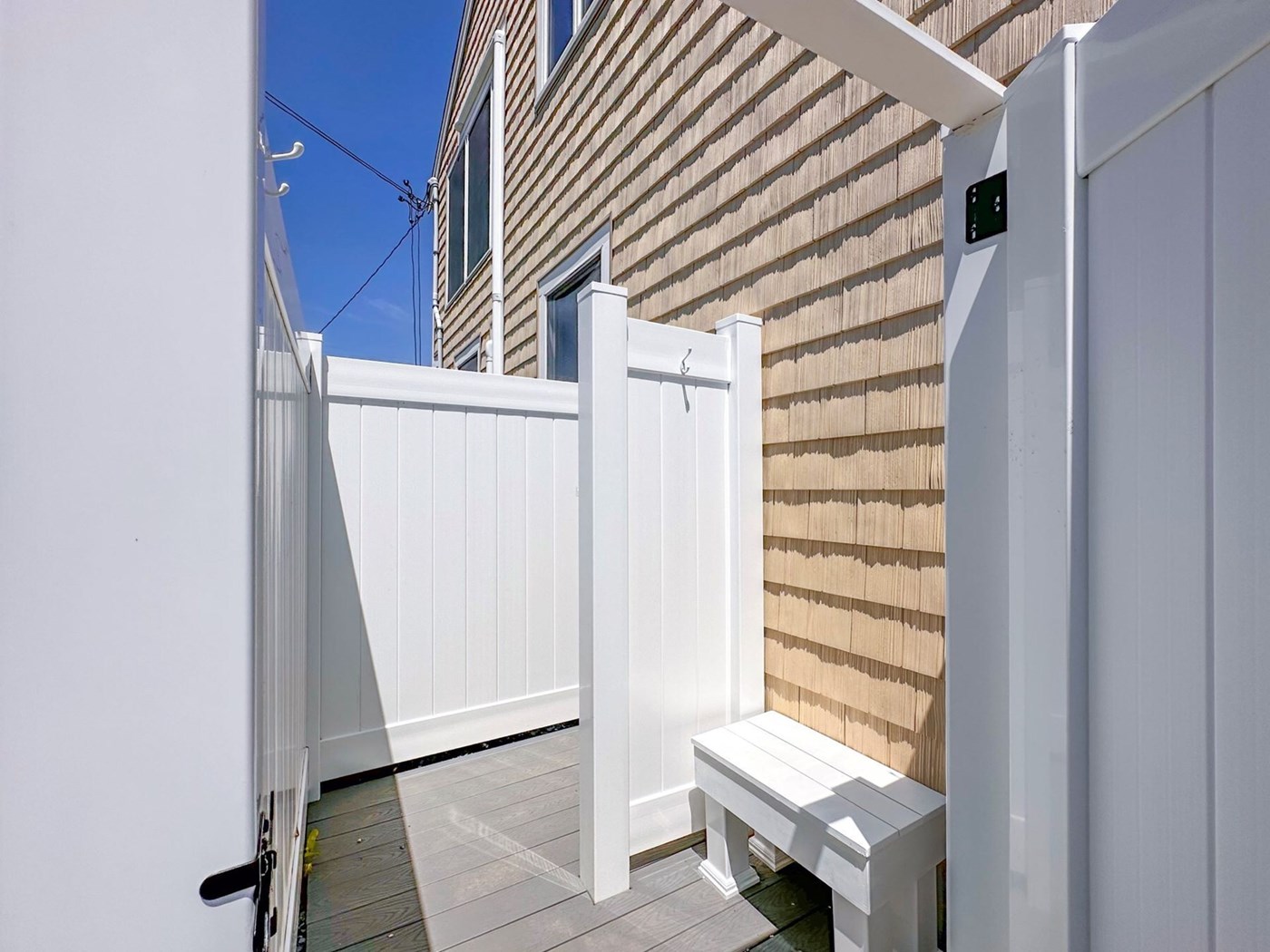 Lower level deck with outdoor seating- 72 Town Neck Road Town Neck Beach Escape
