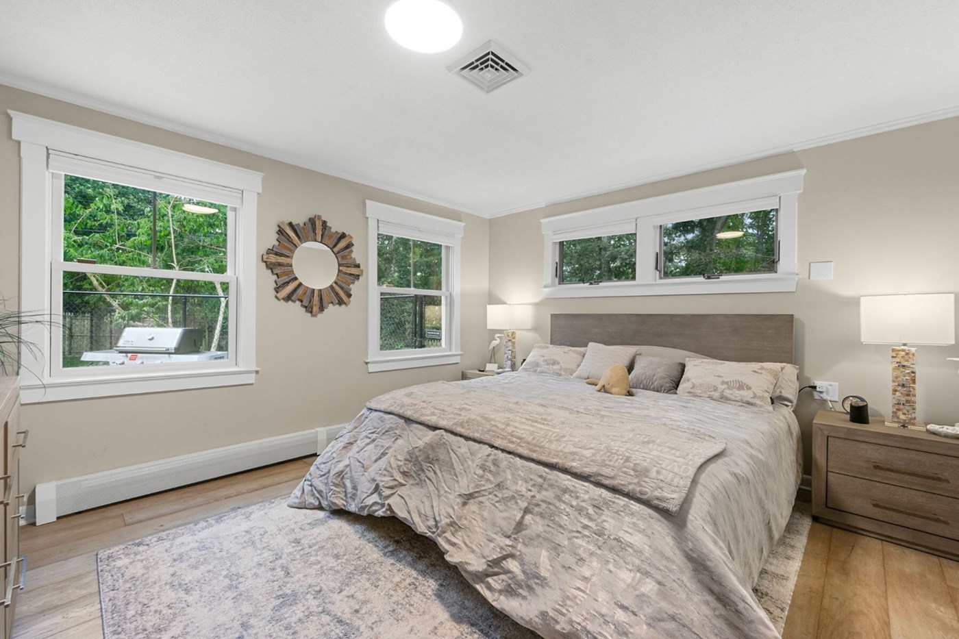 Welcome to A little bit of Heaven! This casual yet eclectic beach home invites you to relax, unwind, and enjoy its many unique spaces. Thoughtfully redesigned with an artistic eye and a craftsman's touch, it combines charm, comfort, and style for the perfect Cape Cod getaway.<br>Step inside this inviting home, ideal for families or small groups. The newly renovated kitchen features stainless steel appliances, granite countertops, a large island with stools, and a striking coral feature wall with open shelving space that's as functional as it is visually captivating.<br>The living room offers abundant natural light, exposed truss beams, and ample seating for gathering with loved ones. The main floor includes two bedrooms—the primary suite and a second bedroom—connected by a Jack and Jill bathroom with a bathtub.<br>Half Bathroom – First floor<br>Bedroom 1 – King – First floor<br>Bathroom 2 – Jack and Jill with shower/tub combination – First floor<br>Bedroom 2 – Double and Twin – First floor<br>A staircase leads to the lower level, where you'll find an additional cozy living room, the third bedroom, and a second full bath, perfect for privacy and extra space.<br>Bedroom 3 – Queen – Lower level<br>Bathroom 2 – Full – Lower level<br>For your comfort, the home is equipped with central air conditioning, plus two ductless mini-splits providing extra cooling on the lower level, ensuring a pleasant stay no matter the season.<br>Outside, the side patio provides a serene retreat under a pergola, complete with comfortable seating and a dining area—perfect for enjoying meals or relaxing with a book. On the other side of the property, you'll find additional yard space, offering even more room to unwind or play outdoors. Upstairs area offers a fully fenced-in yard for added privacy and peace of mind—perfect for letting pets or children play safely. After a day at the beach, rinse off in the enclosed outdoor shower off the small side deck. The home is just a short stroll from the private association beach on Cape Cod Bay, making water access effortless and your seaside escape completely enjoyable.<br>A little bit of Heaven places you close to Cape Cod's scenic spots and family-friendly attractions. Whether you're exploring coastal trails, enjoying local activities, or simply relaxing on the property's peaceful grounds, this retreat combines classic Cape charm with comfort and ease for a truly memorable getaway.<br>The property features four exterior cameras: one by the front entrance, two at the upper backyard level, and one at the lower level.<br>Free Tickets and Complimentary Activities! Create unforgettable memories and experience Cape Cod like a local! Enjoy $750 worth of daily exclusive free tickets to exciting local attractions through our partnership with Xplorie. Your amenities include activities such as Island Cruises, Whale Watch, Bike Rentals and admission to Whydah Pirate Museum. When you're not soaking up the sun on the beach, enjoy daily rounds of golf at Cranberry Valley or Chequessett Golf Courses and mini-golf for family fun.<br>With all NEVR properties, we think of the little things to make your vacation special. Our Guest Welcome Bag, compliments of the homeowner, contains starter quantities of kitchen and bathroom essentials, with a few locally sourced snacks as well (subject to change based marketplace availability).<br>This home has Keyless Entry for your convenience.<br>NO SMOKING of anything containing tobacco, any other substance, and e-cigarettes, inside or outside of the home.<br>Pet Friendly Homes are for a DOG only. This home allows 2 dog with a $50 per night fee. A Pet Registration form must be completed upon reservation confirmation. <br>Fireplaces are not available for guest use. <br>Max parking of cars at property: 4 - No parking on lawn anytime. <br>Large gatherings, parties, or events are not permitted at the home. ???????<br>Additional Information to Assist You:<br>Simply follow our basic check-out instructions at your departure. <br>State and local taxes are charged if applicable. <br>For Reservations made over 60 days away, you will make two payments - 50% initial payment with reservation and the final balance will be auto billed to your credit card 60 days prior to arrival. We accept American Express, Mastercard and Visa for payments.<br>A confirmed reservation is non-refundable--please consider purchasing trip cancellation insurance. Ask our guest specialist for more details regarding cancel options and trip insurance. <br>***Linens - bed sheets, bath/dish/beach towels and bath mats are included with this home<br>Please ask our guest specialist for details. Our NEVR Homes come with mattress covers, pillows and a bed cover such as blanket, quilt, bedspread etc.<br>You must be 25+ years old unless accompanied by a parent or guardian to book one of our Vacation Rental Homes. An ID must be furnished upon request. <br>Area Info: *Mileage is approximate<br>Sandwich Downs Beach is less than 1/2 mile from your door!<br>1 Mile to Launch pad into Marsh for kayaking (with rental options at Rideaway Adventures)<br>1.6 Miles to Café Riverview<br>2 Miles to Amari Restaurant<br>2 Miles to Old Sandwich Game Farm Wildlife Management Area<br>4.5 Miles to Sandwich Mini-Golf for family fun!<br>5.5 Miles to Sandwich Boardwalk - a beautiful walk on a wooden boardwalk<br>6 Miles to Heritage Museums and Gardens read more show less
