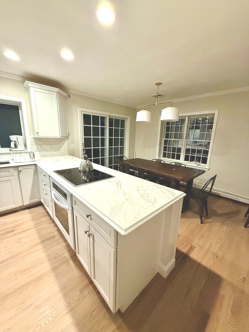 Kitchen reno in progress. EIK table, seats 8 (under light)