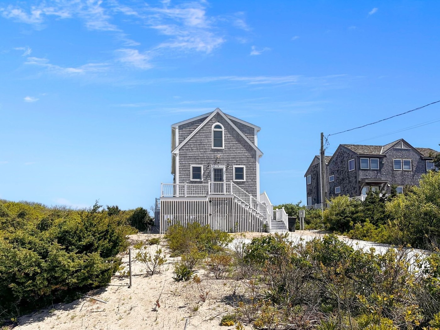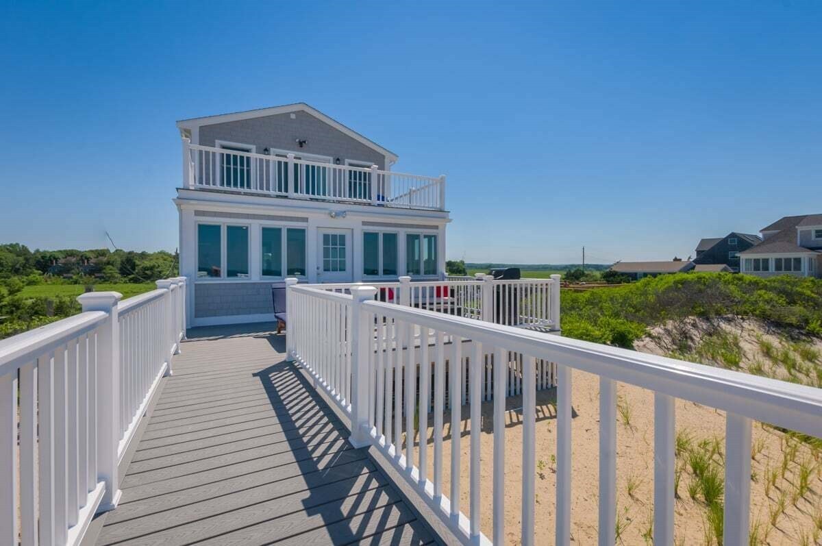 Staircase off of deck to Spring Hill Beach.