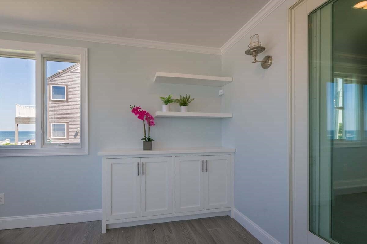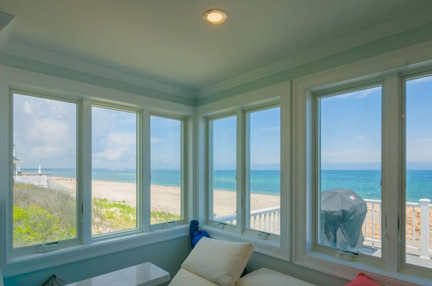 Sun room with views of the ocean.