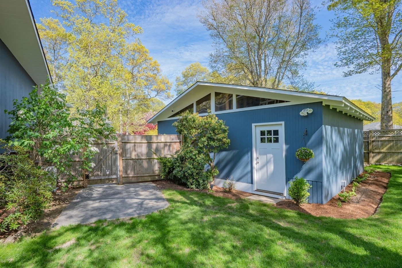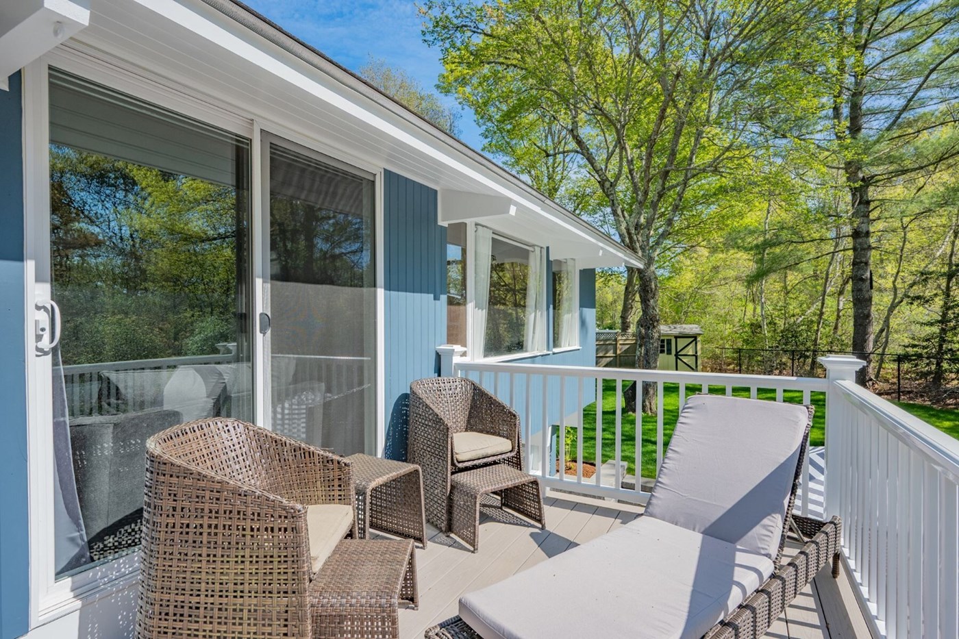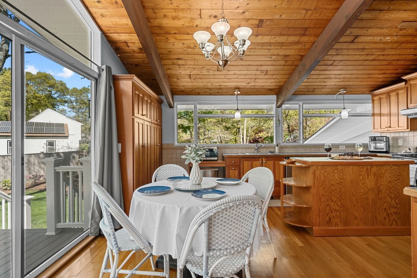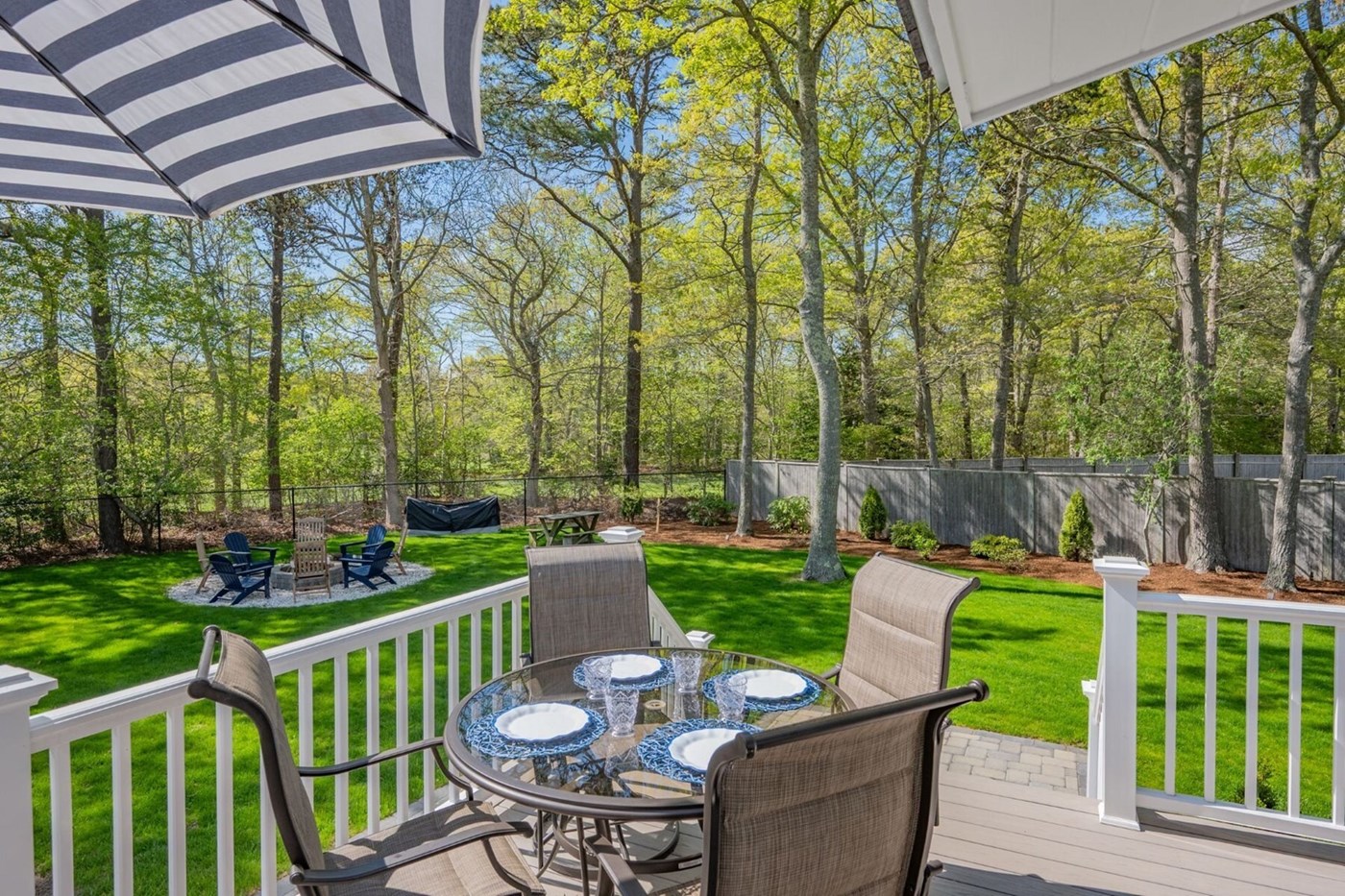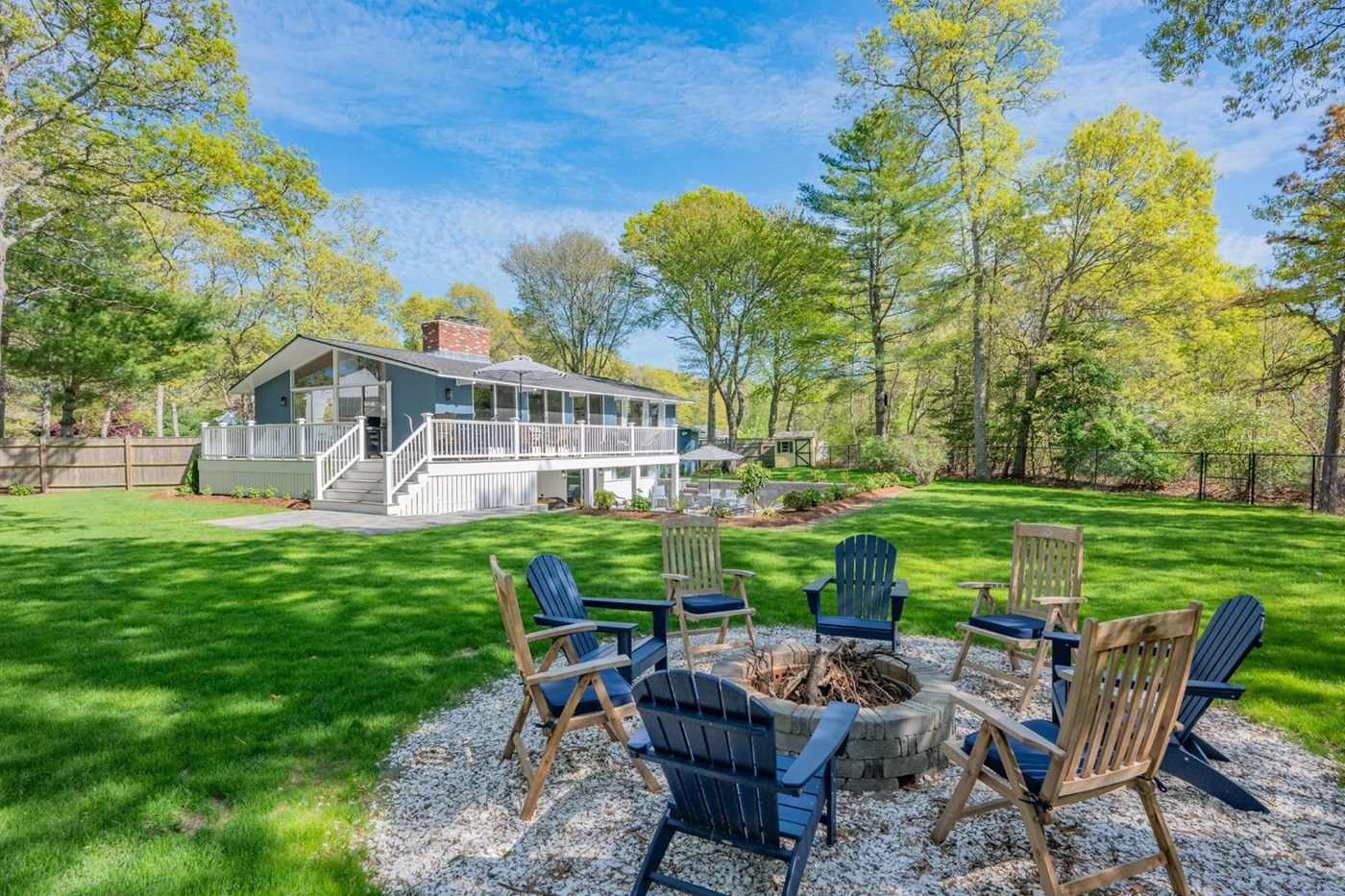 Outdoor patio with outdoor bar, fire pit, and dining area
