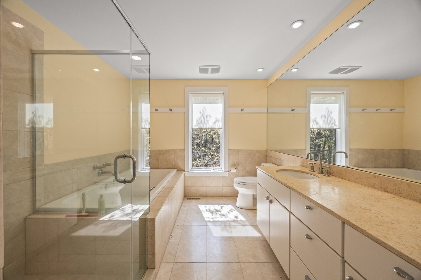 Full Bath on First Floor with Door Out to Outdoor Shower